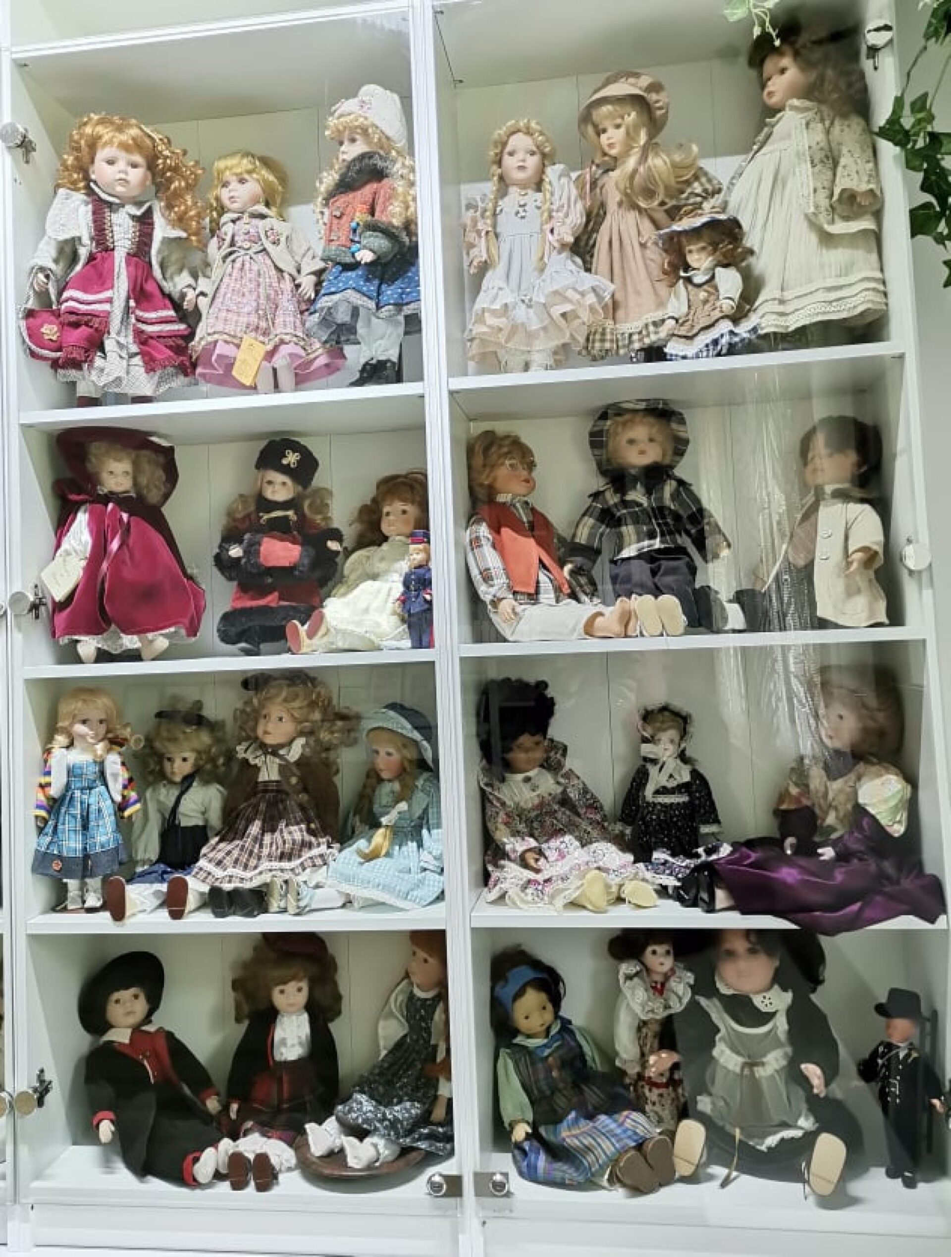 În colecția surorilor Orșivschi sunt 400 de păpuși, însă, pentru început, profesoarele au ales să scoată pentru vizitare, într-o cameră separată a muzeului, frumos așezate în vitrine, 180 de exponate.