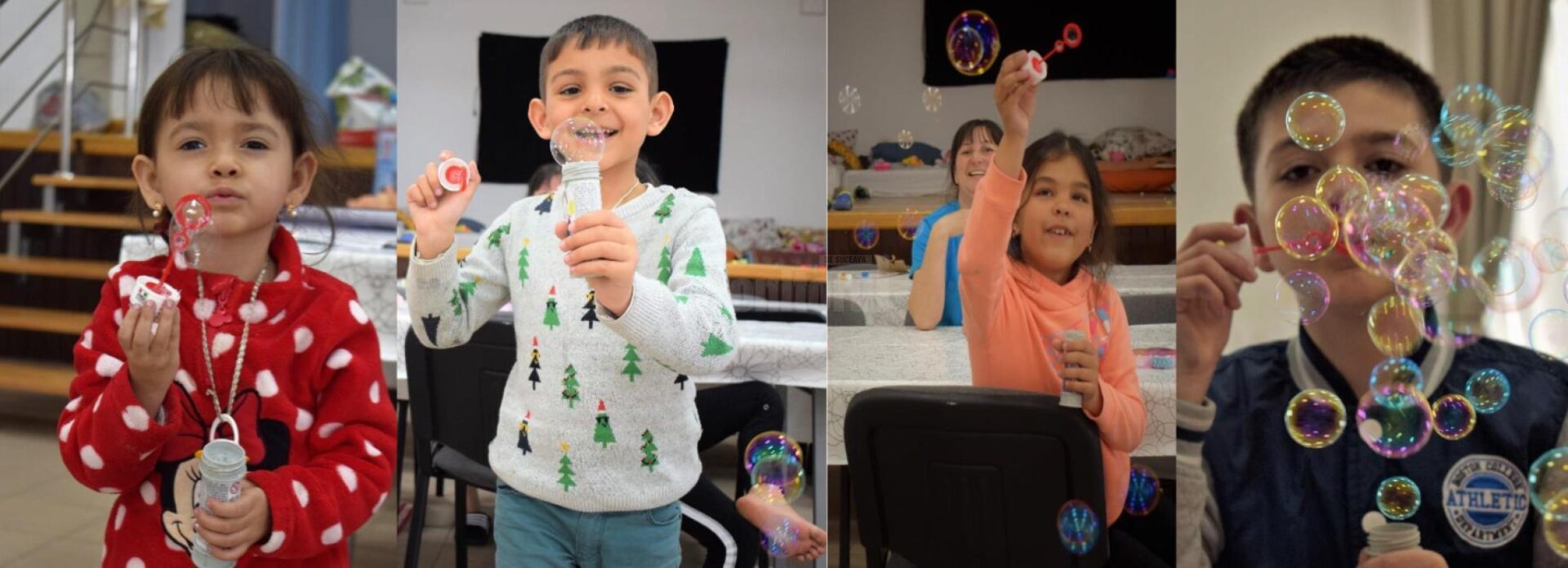 Ne-am oprit, și eu și buna mea prietenă ce mă însoțea, preț de doar câteva clipe în dreptul ușii și ne-am alungat dincolo de prag tulburarea. Nu ne puteam apropia de copii și să fim încă însoțite de ea. Venisem să le fim, măcar și pentru câteva capete de ceas, mângâiere. Și mică bucurie! Și ne-am pregătit cu grijă și cu drag pentru întâlnirea cu ei. Cum arată dragul pentru copii, pe dinăuntru? S-așază-n multe-multe jucării, în cărți de povești și-n cărți de colorat, și în caiete „în care poți să scrii orice” și în carnețele minuscule (dintre cele în care-ncap îngrijorările și frământările să se-ascundă, toate-toate), în cutii multe și mari de carioci și de creioane colorate („și toate ne-ncepute”), în plastilină și în jocuri de societate, în mașinuțe și în mingi și în cuburi multe-multe și în tuburi în care s-au dosit zeci de baloane de săpun, frumoase și fascinante, dar așa de trecătoare.