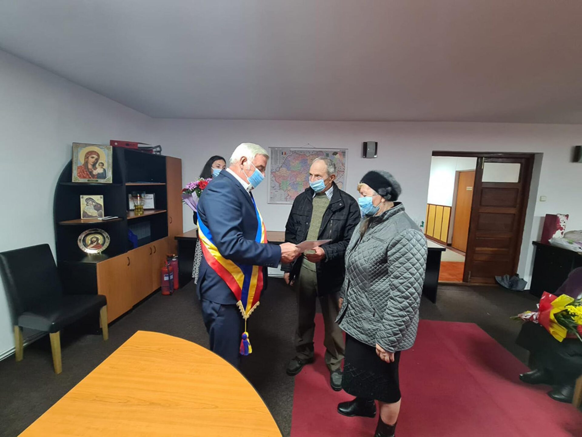 Mai multe familii au fost premiate în cursul zilei de luni de conducerea Primăriei Ipotești. Mai exact, este vorba de nouă familii care au împlinit 50 de ani de căsnicie. Ceremonia a fost una scurtă, dar emoționantă și pe tot parcursul ei oamenii au purtat mască de protecție. În afara diplomei și a sumei de bani acordată, sărbătoriții au mai primit flori și șampanie.