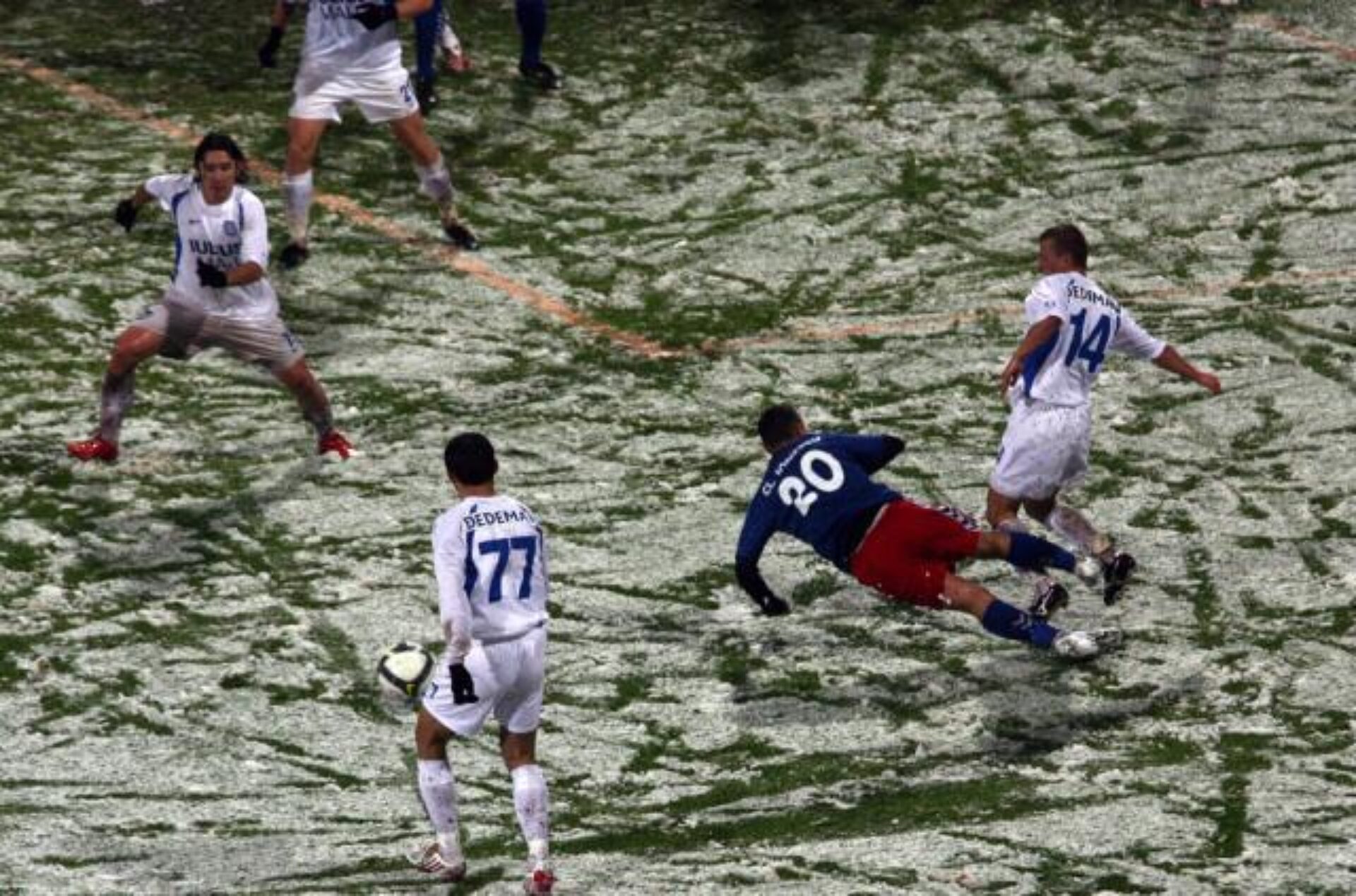 În minutul 25, arbitrul de centru a oprit partida din cauza faptului că nu se mai vedeau marcajele care delimitau terenul de joc. Mai mulți angajați ai clubului brașovean au îndepărtat, cu ajutorul unor mături, zăpada de pe liniile de marcaj ale careurilor, precum și de pe linia de fund, în timp ce mai mulți jucători ai celor două echipe și-au schimbat ghetele. Odată cu reluarea partidei, oficialii brașoveni au adus o minge de culoare portocalie, pentru că balonul de culoare albă folosit până atunci era greu de observat.