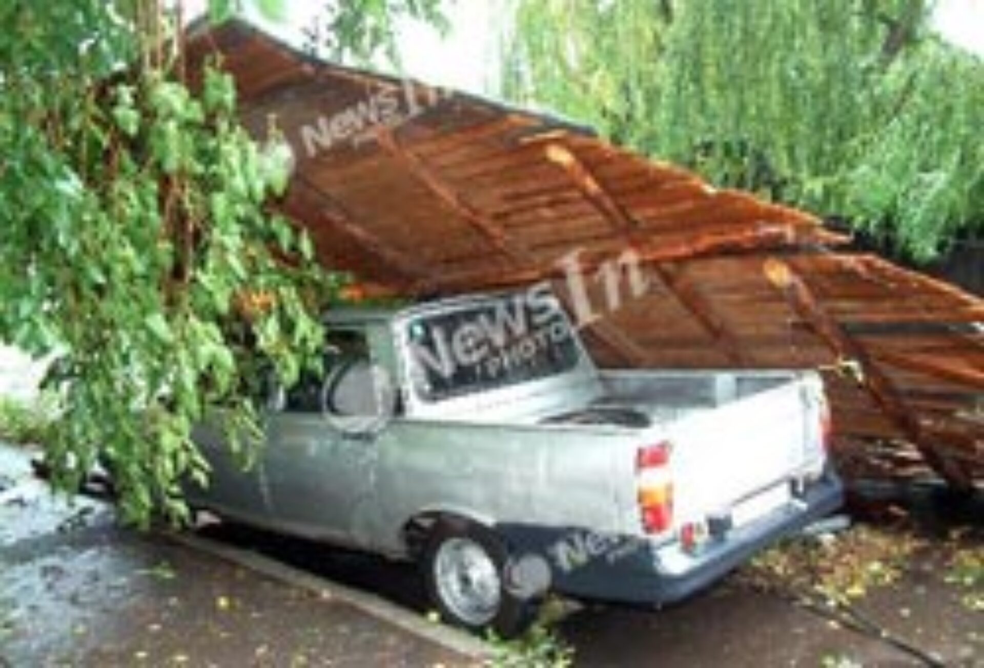 Zeci copaci au fost rupți, câteva străzi blocate pentru câteva minute de crengi căzute și două mașini au fost strivite, sâmbătă seară, în timpul unei furtuni care nu a durat nici cinci minute.