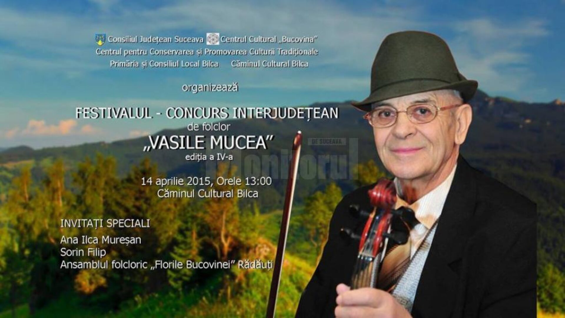 Consiliul Județean Suceava, Centrul Cultural Bucovina – Centrul pentru Conservarea și Promovarea Culturii Tradiționale Suceava, Primăria și Consiliul Local Bilca organizează marți, 14 aprilie, la ora 13.00, la Căminul Cultural Bilca, cea de-a IV-a ediție a Festivalului-concurs interjudețean de folclor „Vasile Mucea”. Invitați speciali: Ana Ilca Mureșan, Sorin Filip și Ansamblul folcloric „Florile Bucovinei” Rădăuți.