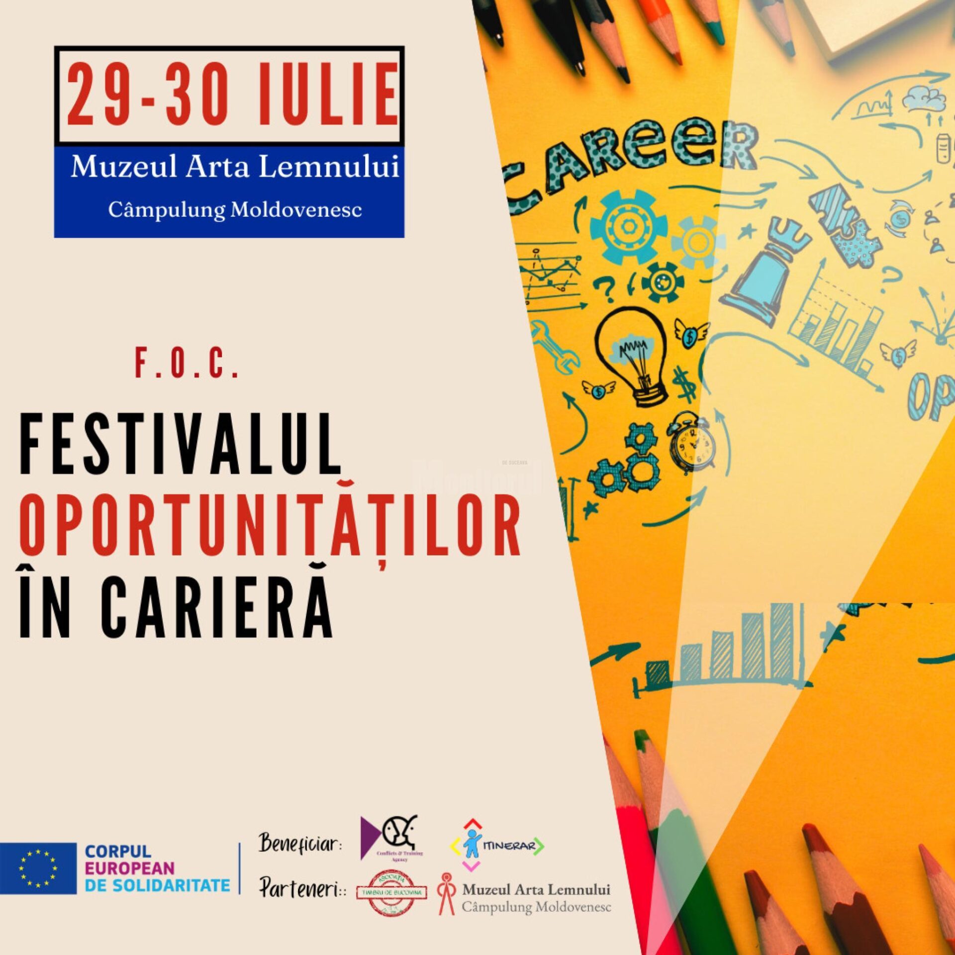La Muzeul Arta Lemnului va avea loc, în perioada 29-30 iulie, începând cu ora 11:00, Festivalul Oportunităților în Carieră (FOC), ediția I, „Festivalul verii din punct de vedere profesional”, după cum spun organizatorii (Asociația Timbru de Bucovina/Stamp of Bukovina și Conflicte & Training Agency).
