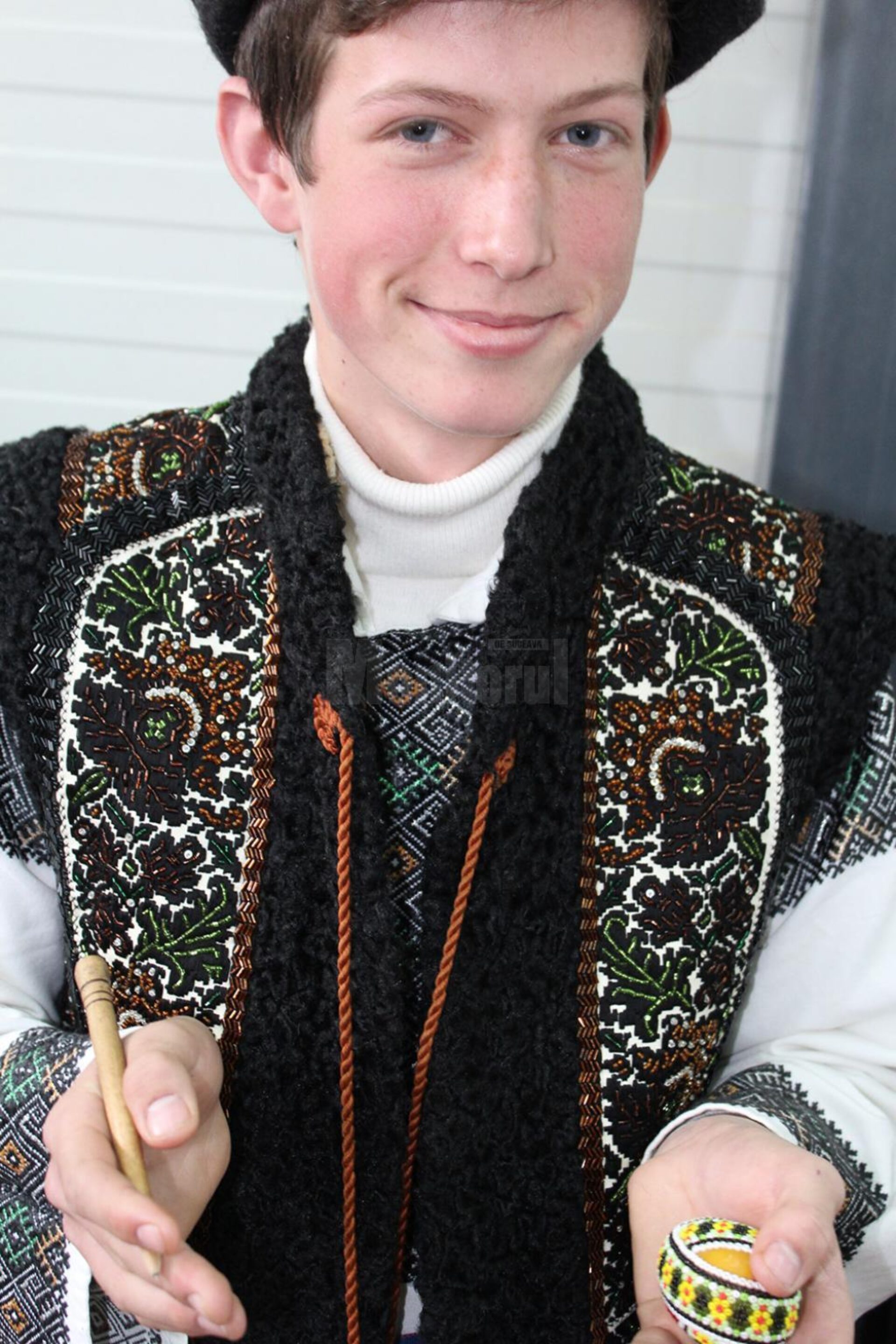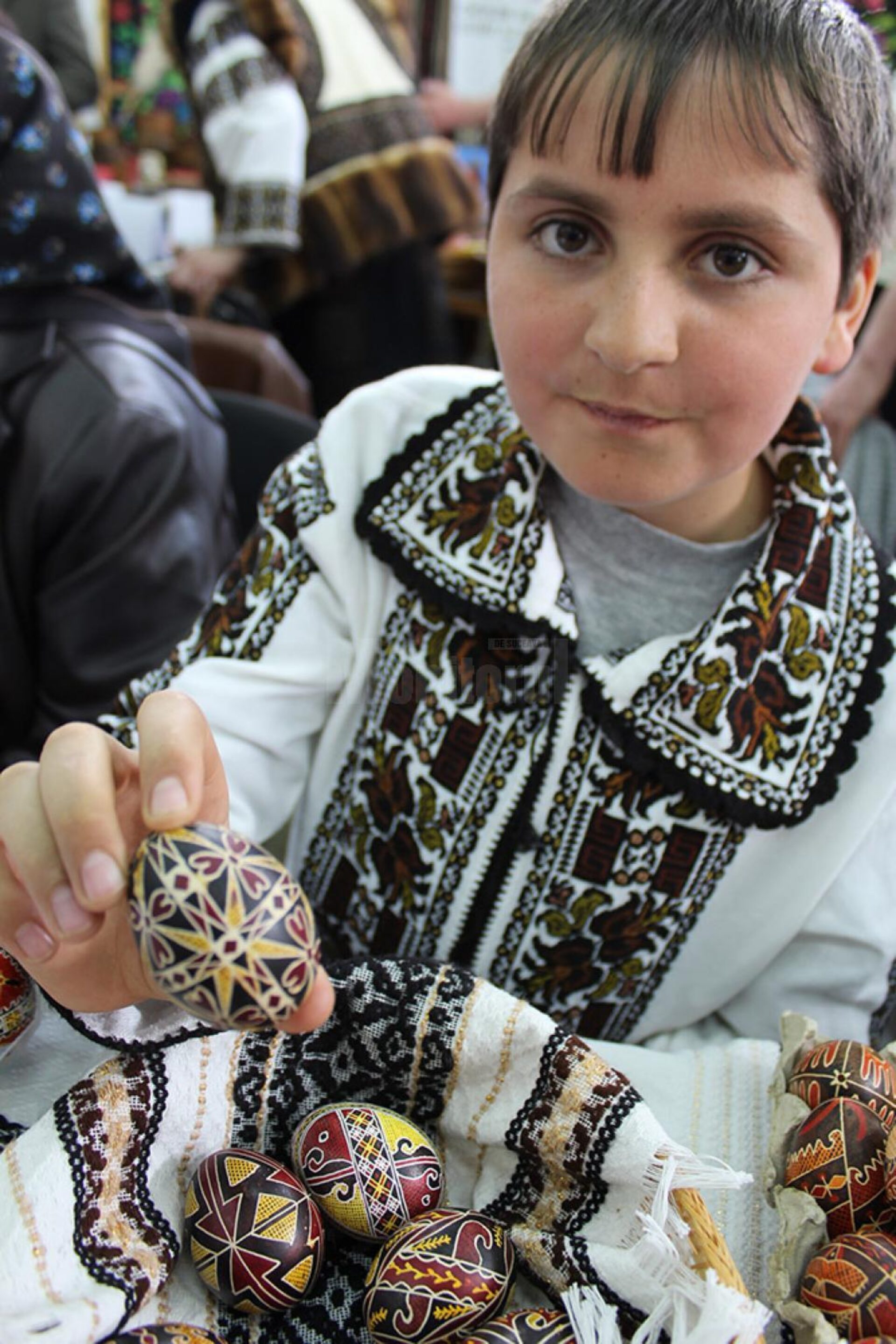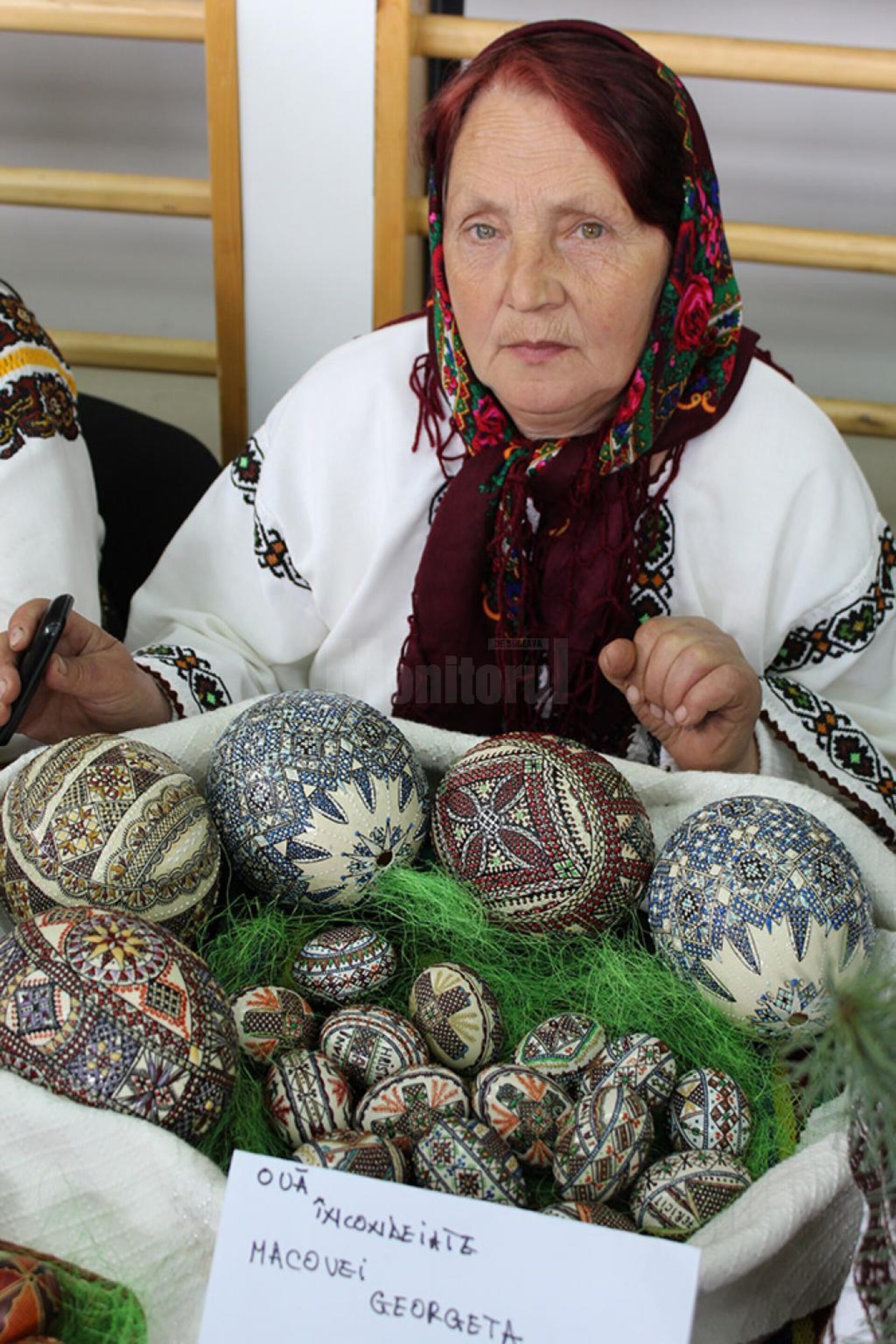 Aproape de intrare, încadrat de o trupă de frumoase bucovinence, care își expuneau mândre creațiile culinare, pe care le mâncai cu ochii, iar de cealaltă parte, de tinere încondeietoare, un tinerel falnic ca un brad crescut pe creste, fulgerător în privire și dulce la vorbă, lucra de zor, în timp ce explica oricui se arăta interesat cum se fac și cu ce modele se decorează strălucitoarele ouă mărgelate, ce îți furau privirea.