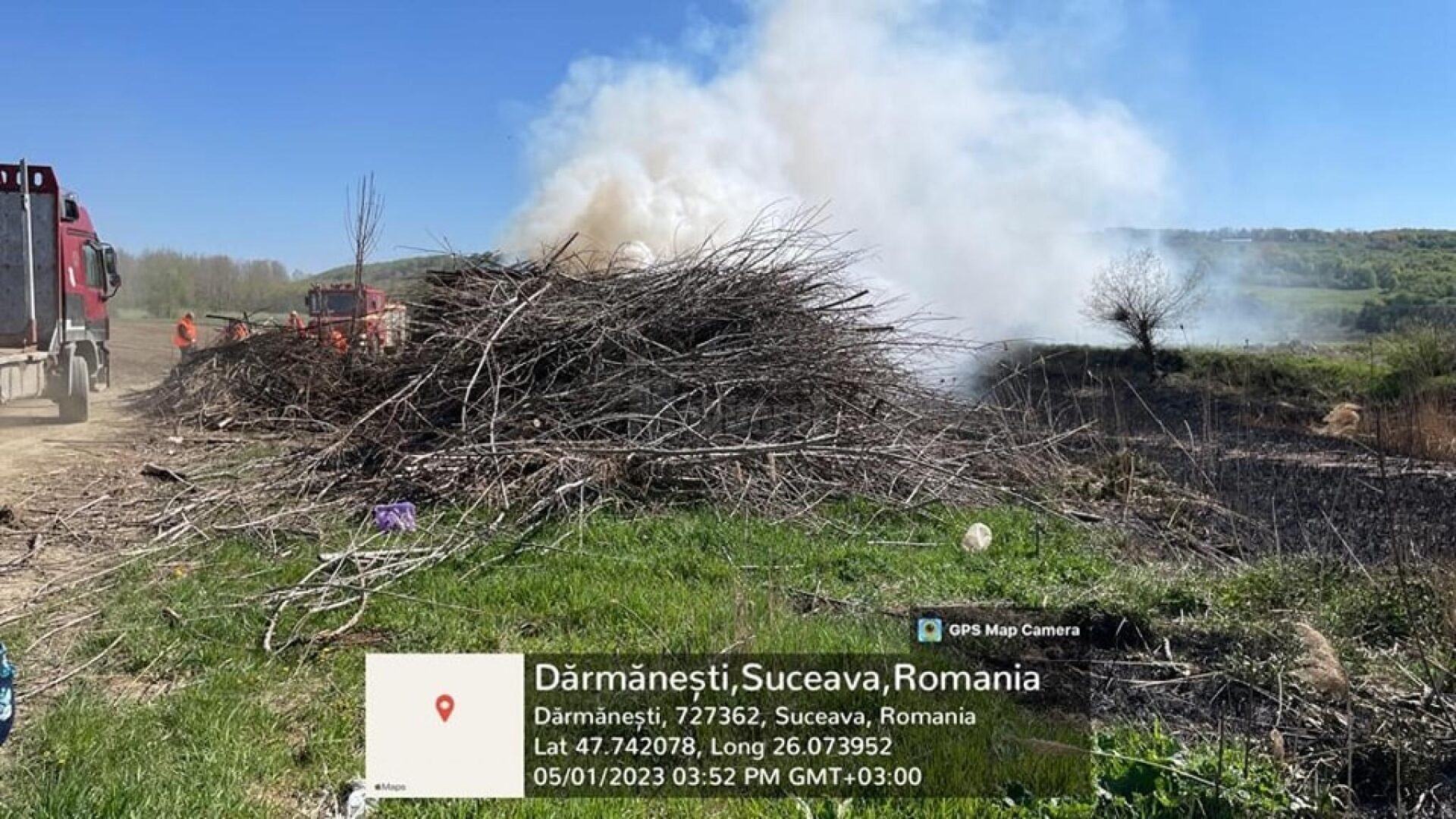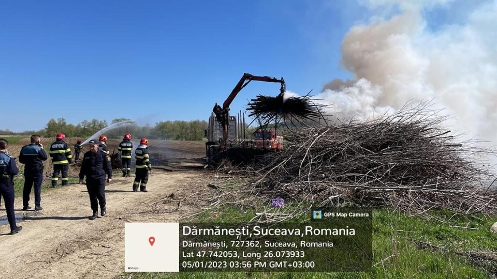 ”La verificările în teren s-a constatat producerea unui incendiu de vegetație uscată pe o suprafața de aproximativ 1.000 mp, incluzând și o suprafață de aproximativ 80-100 mp pe care era depozitată o cantitate de 100 mc plop energetic”, se arată într-un comunicat al Gărzii de Mediu Suceava. Flăcările au mistuit 50-70 mc plop energetic aparținând unui operator economic. Pentru stingerea incendiului a fost nevoie de intervenția echipajelor de la ISU “Bucovina” Suceava.