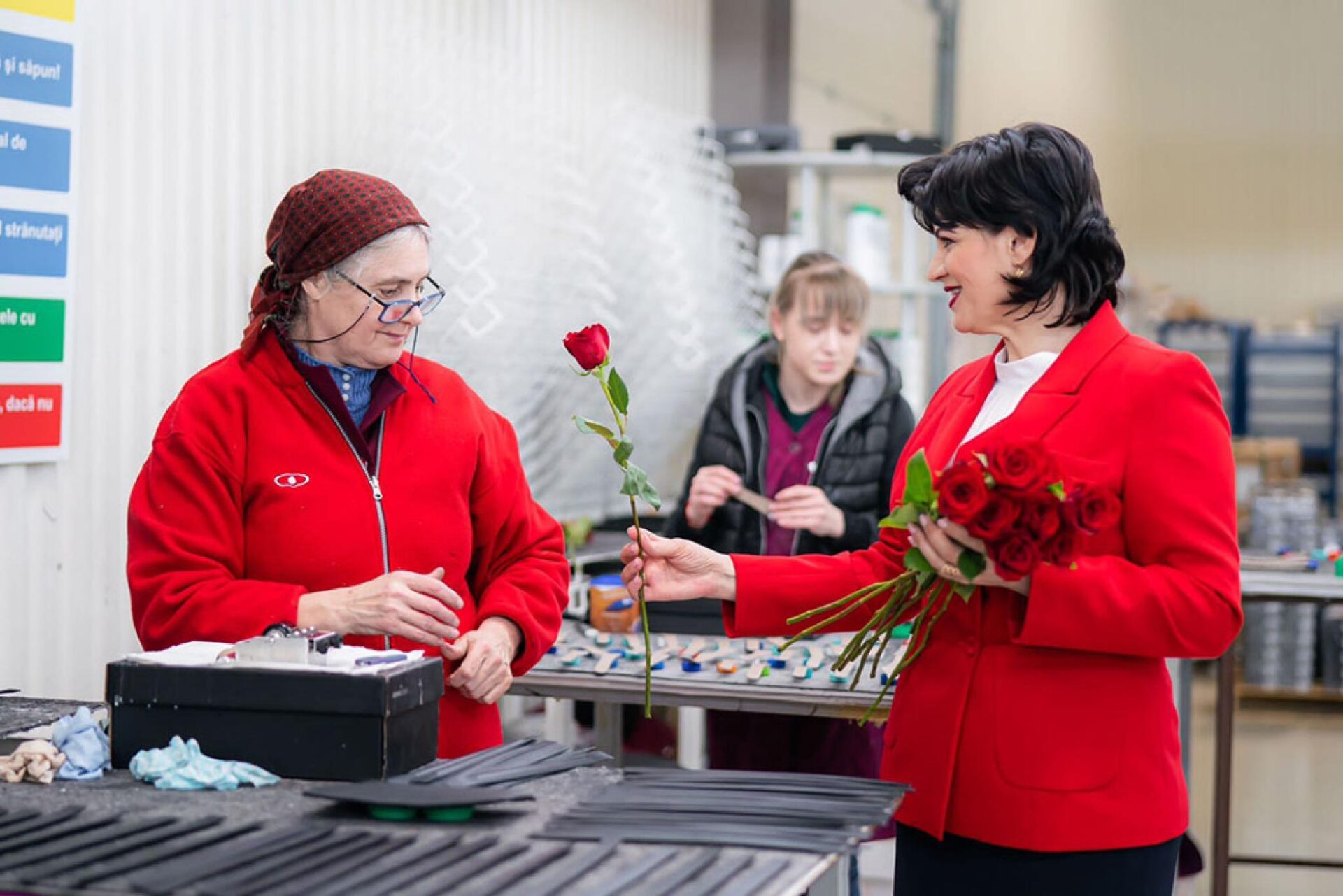 Surpriză plăcută pentru cele 180 de angajate ale fabricii de încălțăminte Denis. Acestea au fost vizitate de Larisa Blanari și colegele din organizația județeană de femei a PSD Suceava, care le-au oferit câte un buchet de trandafiri, cu ocazia Zilei Internaționale a Femeii.