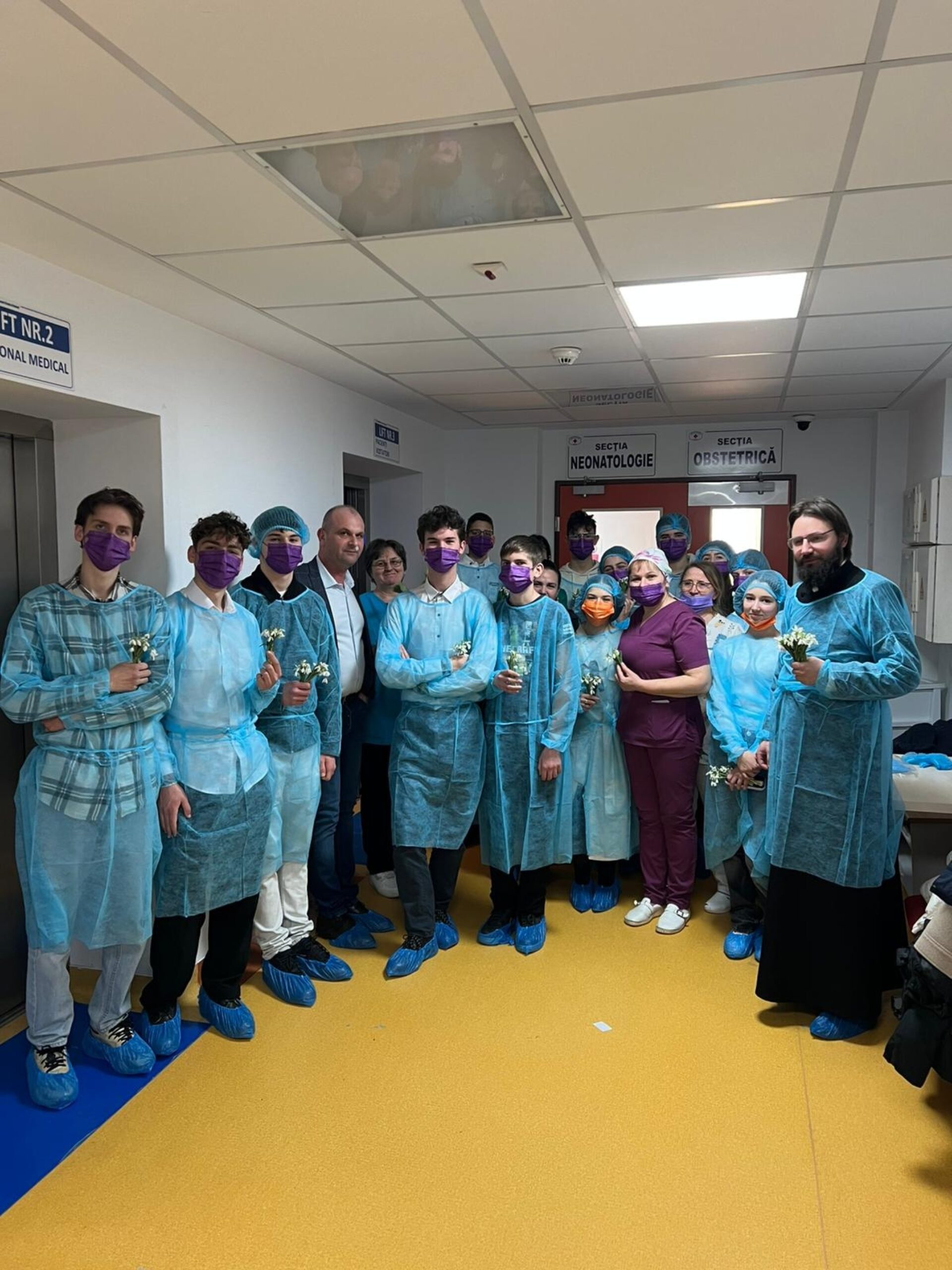 Ultima oprire a fost la Rădăuți, la Spitalul Municipal „Sfinții Doctori Cosma și Damian”. Însoțiți de domnul manager Bogdan Alupoaie și de doamna director de îngrijiri medicale Angelica Foca, tinerii noștri au oferit flori multe mămicilor de la Neonatologie, Maternitate-Ginecologie și femeilor internate la secțiile Chirurgie Generală, Ortopedie Traumatologie, Oncologie și Neurologie.