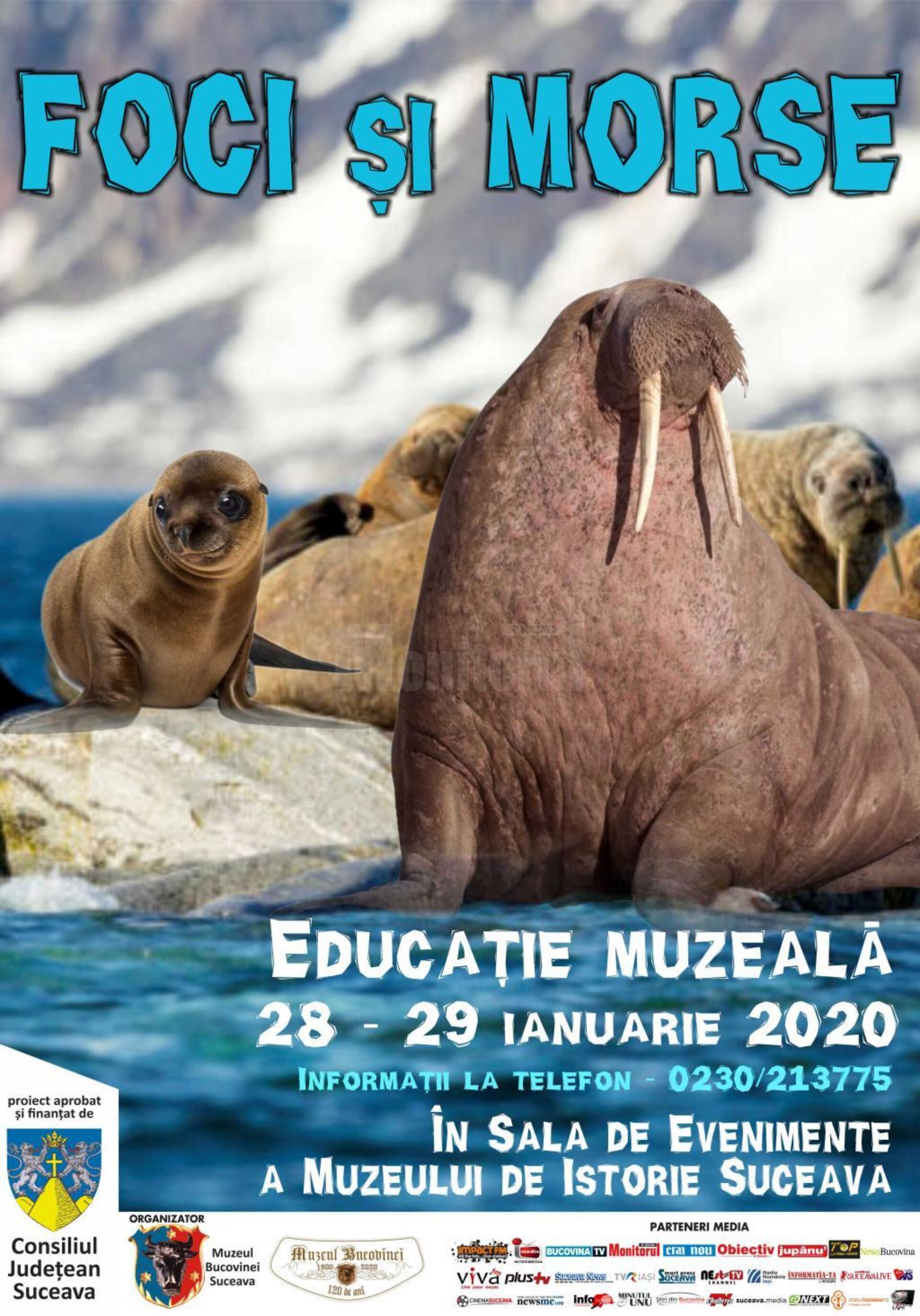 Muzeul de Științe ale Naturii din Suceava invită sucevenii și nu numai să participe, în zilele de 28 și 29 ianuarie 2020, la ora 900, la lecția de muzeuintitulată„Foci și morse”.