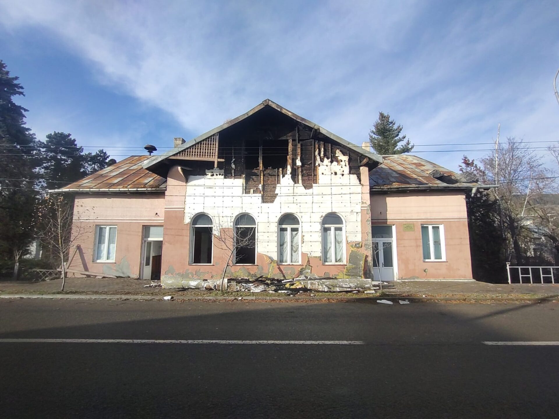 De asemenea, la exteriorul construcției, au ars pubelele de gunoi și circa un metru cub lemn de foc. În urma incendiului, s-au degradat tavanul, pereții interiori și exteriori și altele.