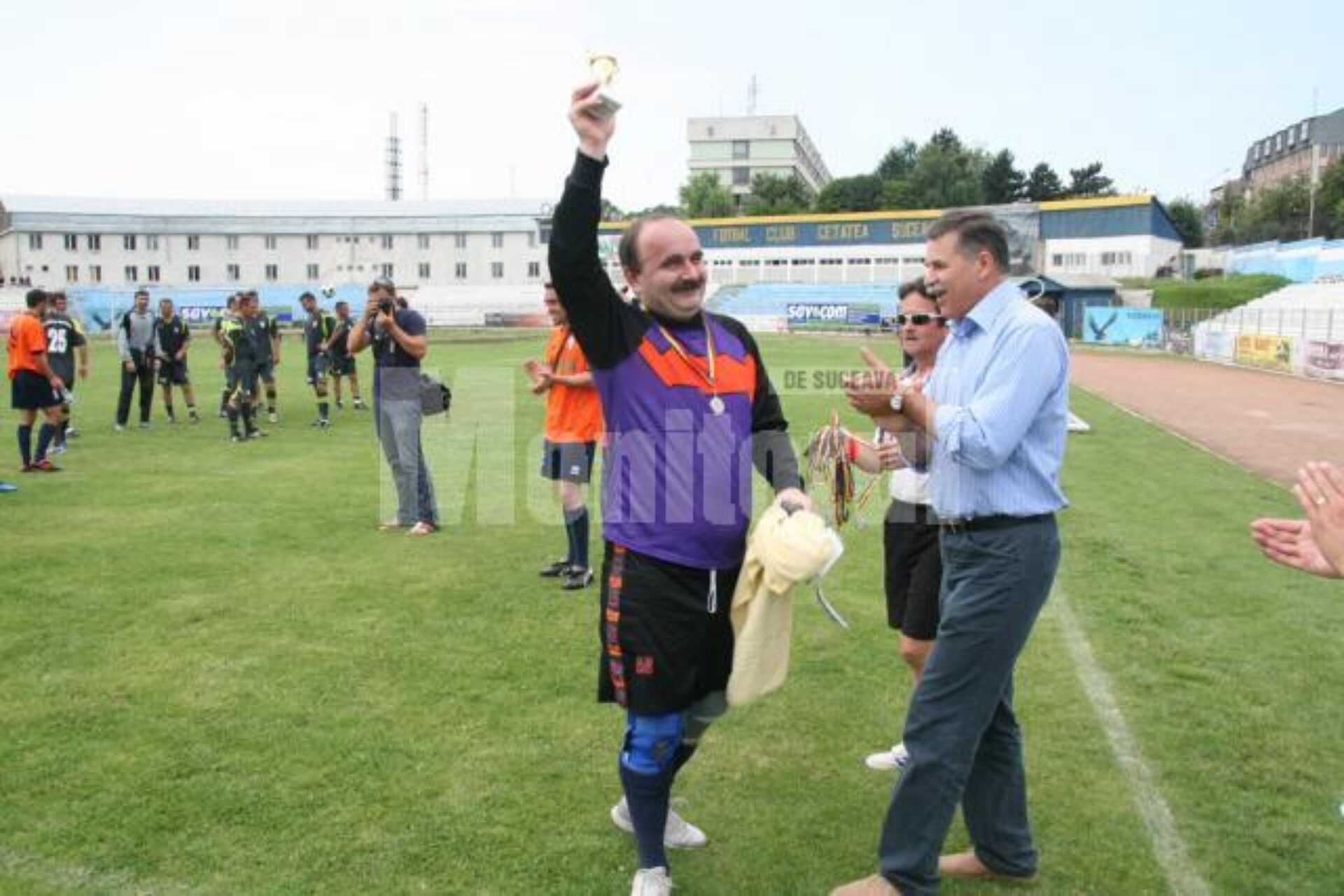 Totul a fost bine și frumos și la finalul partidei, când componenții celor două echipe au fost premiați cu diplome și medalii. Mai rău a fost că imediat după festivitatea de premiere organizatorii au dat bir cu fugiții, lăsând fostele glorii cu capul soare și cu gâtlejul uscat. Spre lauda lor, foștii fotbaliști ai Sucevei și-au revenit în timp record din uluială. Au făcut rapid o chetă și au rezolvat cât mai rapid cea mai stringentă problemă, cea a berii de după meci. Chiar dacă a parcurs 200 de kilometri pentru a onora invitația organizatorilor de a participa la acest meci demonstrativ, Relu Buliga nu a părut să pună prea tare la inimă gestul de la final al amfitrionilor. „Eu am venit ca să mă reîntâlnesc cu foștii mei coechipieri și sunt bucuros, ca de fiecare, dată că i-am revăzut. Am petrecut momente extraordinare împreună, iar de fiecare dată când reușim să ne strângem la o masă nu ne mai oprim din povestit. Am rămas prieteni și după atâția ani și asta e tot ce contează”, a declarat fostul mijlocaș al CSM-ului Suceava.