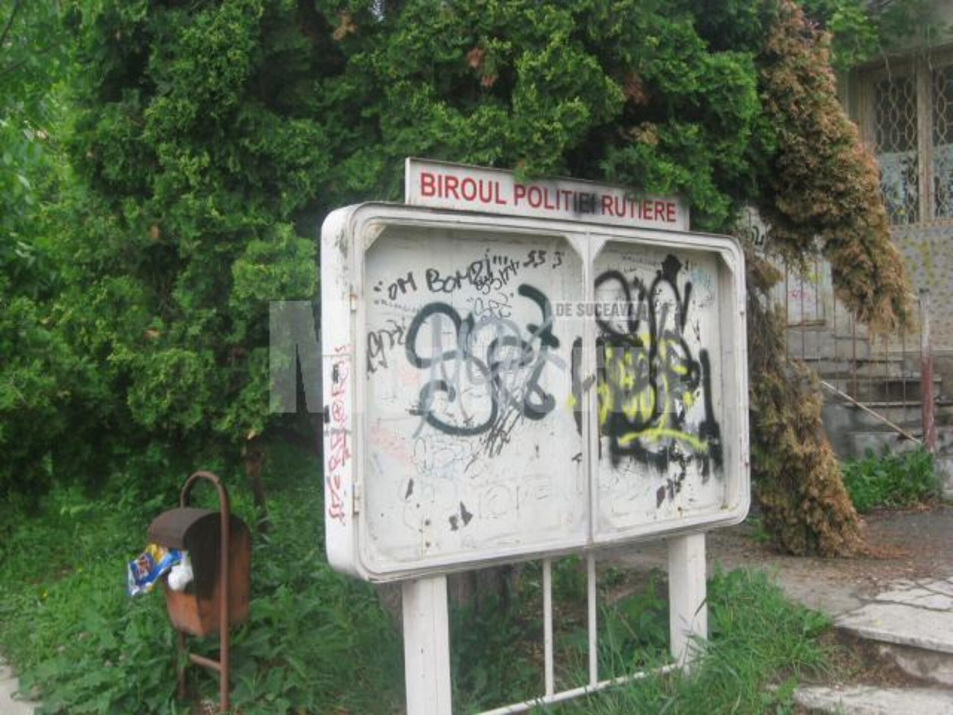 Clădirea în care până în 2009 a funcționat Biroul Rutier al Poliției municipiului Suceava și până în 2011 Biroul de Evidență a Persoanelor a ajuns într-o stare deplorabilă. Pereți acoperiți de graffiti, mesaje obscene, geamuri sparte și multă mizerie, toate tronează inadmisibil pe o clădire și într-o curte care încă aparțin de Inspectoratul de Poliție Județean Suceava, structură a Ministerului Administrației și Internelor.