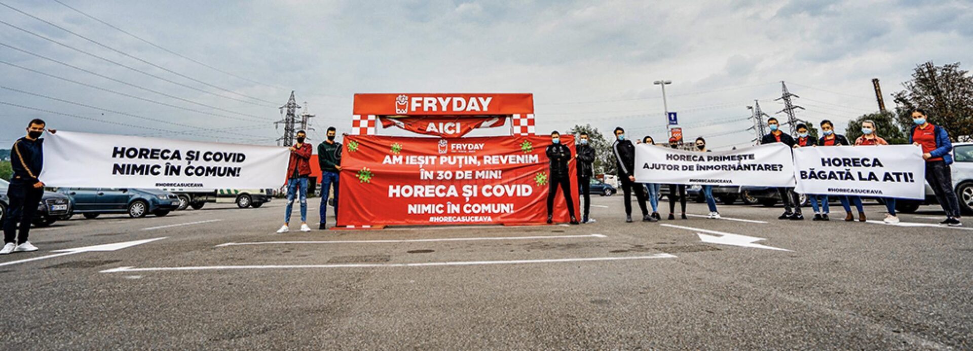 Antreprenorul Lucian Florea și-a mobilizat colectivul pe care îl are în cadrul restaurantului FRYDAY și au decis să petreacă 30 de minute în parcarea din zona destinată serviciului ParkThru, afișând câteva mesaje destul de dureroase dar care reflectă cruntul adevăr.