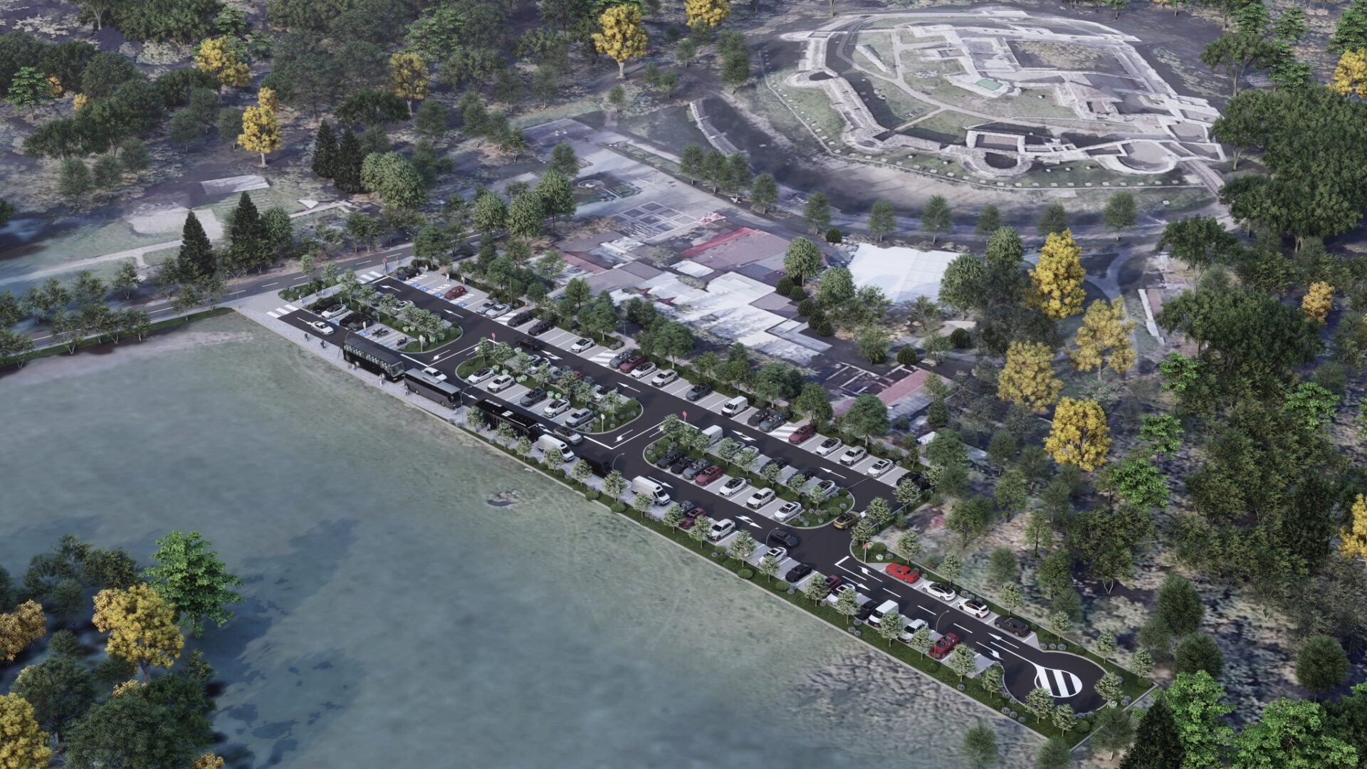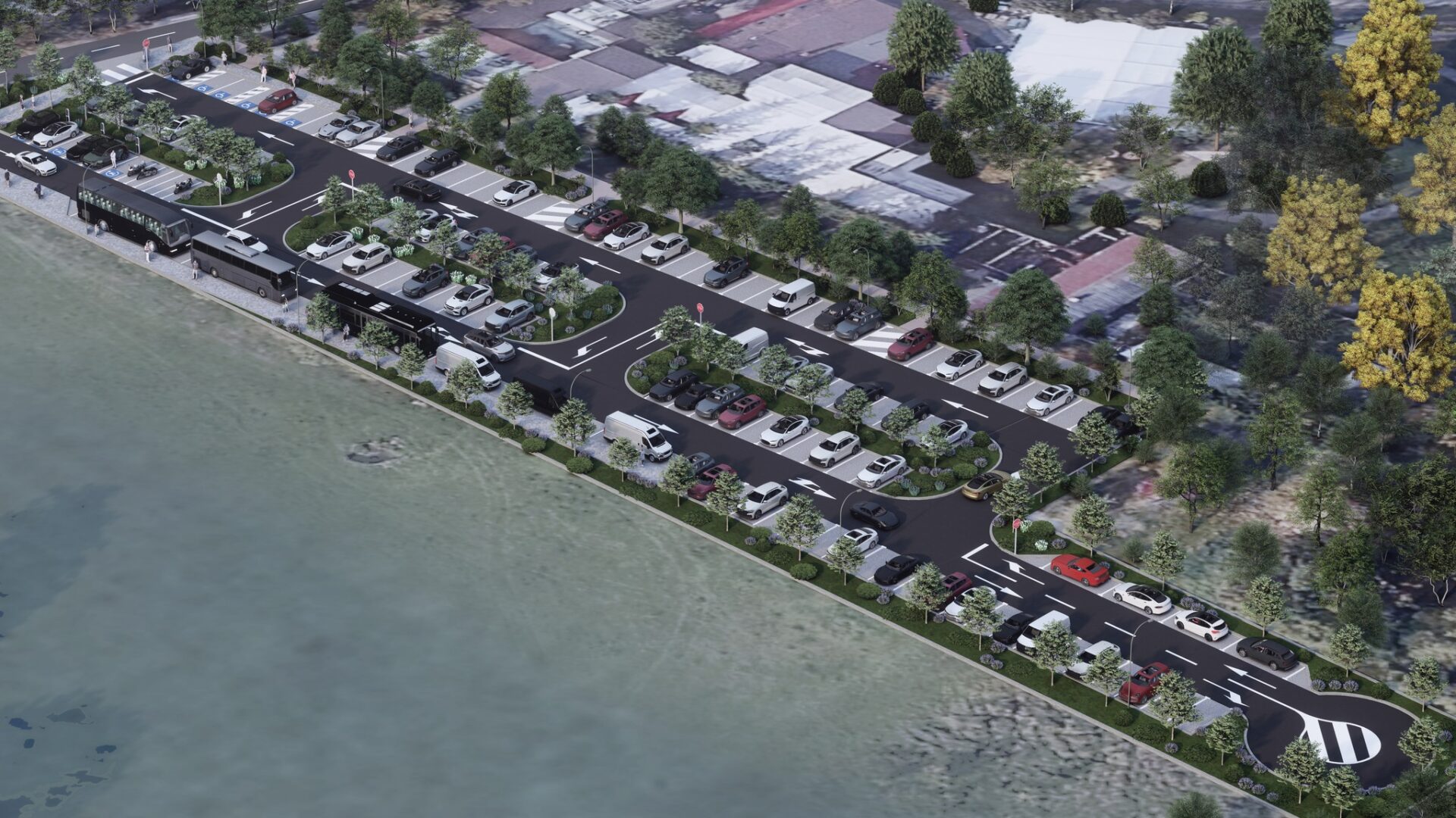 Proiectul mai prevede trei zone verzi interioare, sub formă de scuaruri de separație, sistem automatizat de irigații, iluminat public modern, supraveghere video, bariere automate, camere LPR pentru recunoașterea numerelor de înmatriculare, sistem electronic de plată și stații de încărcare pentru vehicule electrice.