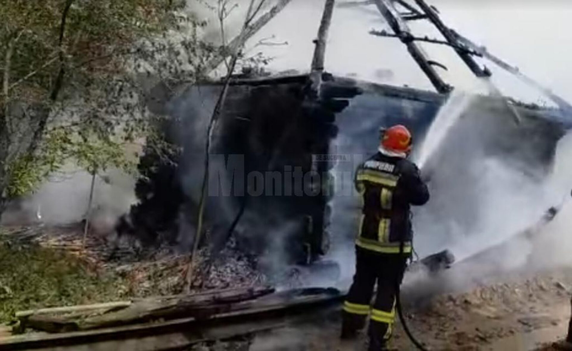 Din fericire, nu s-au înregistrat victime, iar pompierii au salvat restul gospodăriei și o locuință învecinată.