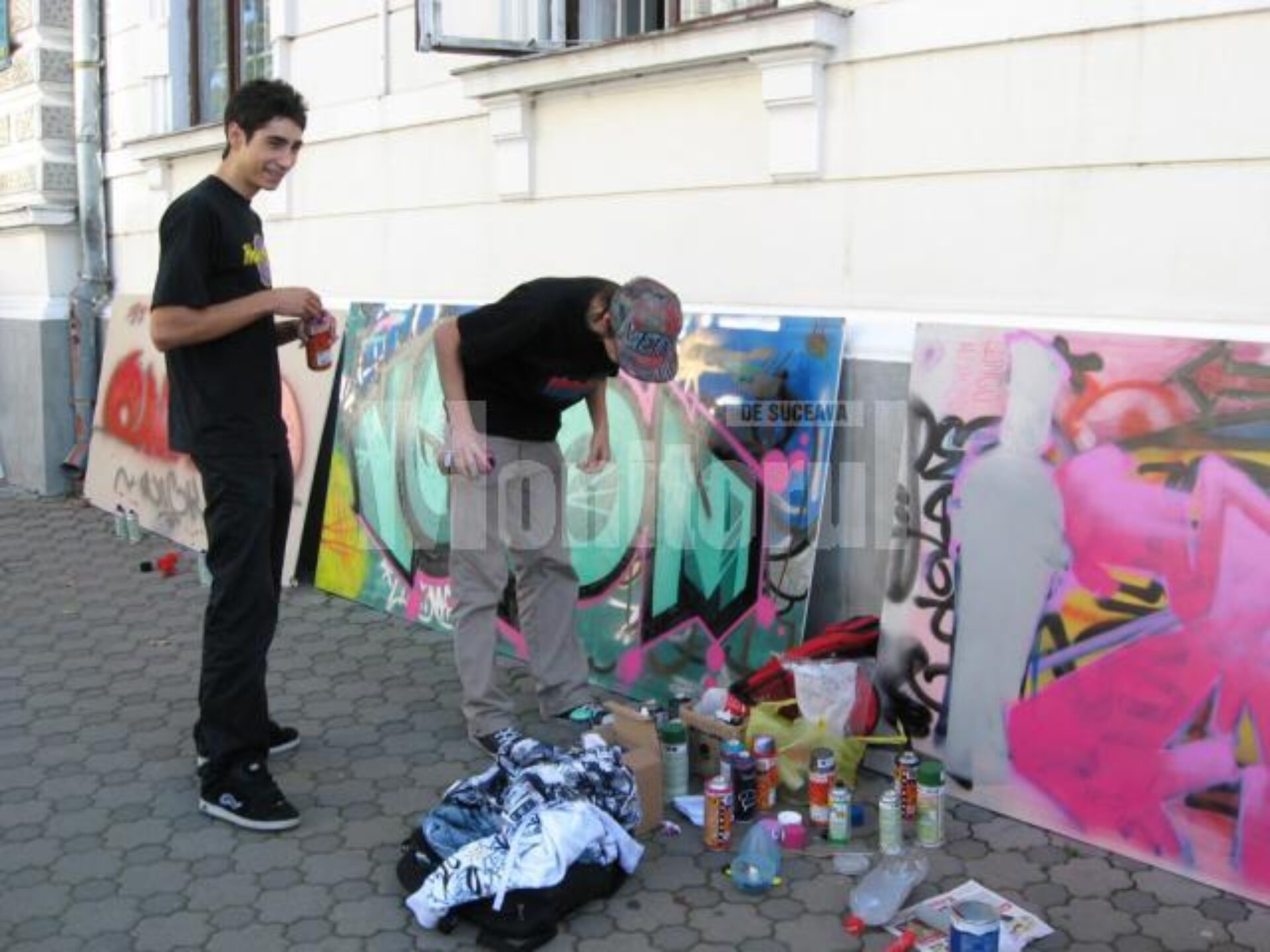 Dotați cu propriile doze de spray, deși li s-au pus la dispoziție materiale consumabile pentru lucru, grafferii, elevi de la colegiile sucevene „Ștefan cel Mare”, „Petru Rareș”, „Spiru Haret” și Colegiul de Artă „Ciprian Porumbescu”, au realizat, în timpul execuției artistice, un adevărat spectacol de stradă.