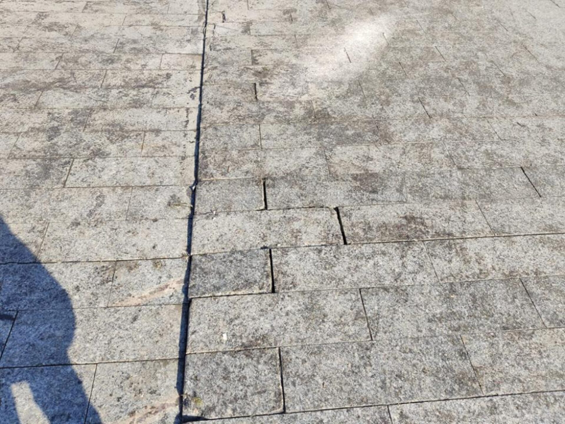 Una dintre cele mai murdare și distruse zone din municipiul Suceava este o parte din cartea de vizită a orașului – esplanada Casei de Cultură. Pe granitul chinezesc pe care calcă, din 2012 încoace, localnicii și oaspeții Cetății lui Ștefan cel Mare, stratul de jeg din cea mai mare zonă pietonală a Sucevei a tot crescut, mai ales în preajma căsuțelor în care se vând produse alimentare. Mâzga formată din grăsimi scurse de la grătare, vin, țuică, sucuri sau cafeaua vărsate voit sau din greșeală pe jos, noroiul adus pe tălpi de trecători sau pe roți de mașinile care fac aprovizionarea căsuțelor din târgurile ocazionale și mizeria lăsată de porumbeii care și-au făcut casă pe sub acoperișurile din Centru se întinde din fața magazinelor din apropierea Palatului Administrativ până aproape de Biserica „Sfântul Dumitru”, prinzând în mijloc clădirea Casei de Cultură, cu un brâu întunecat de jeg.
