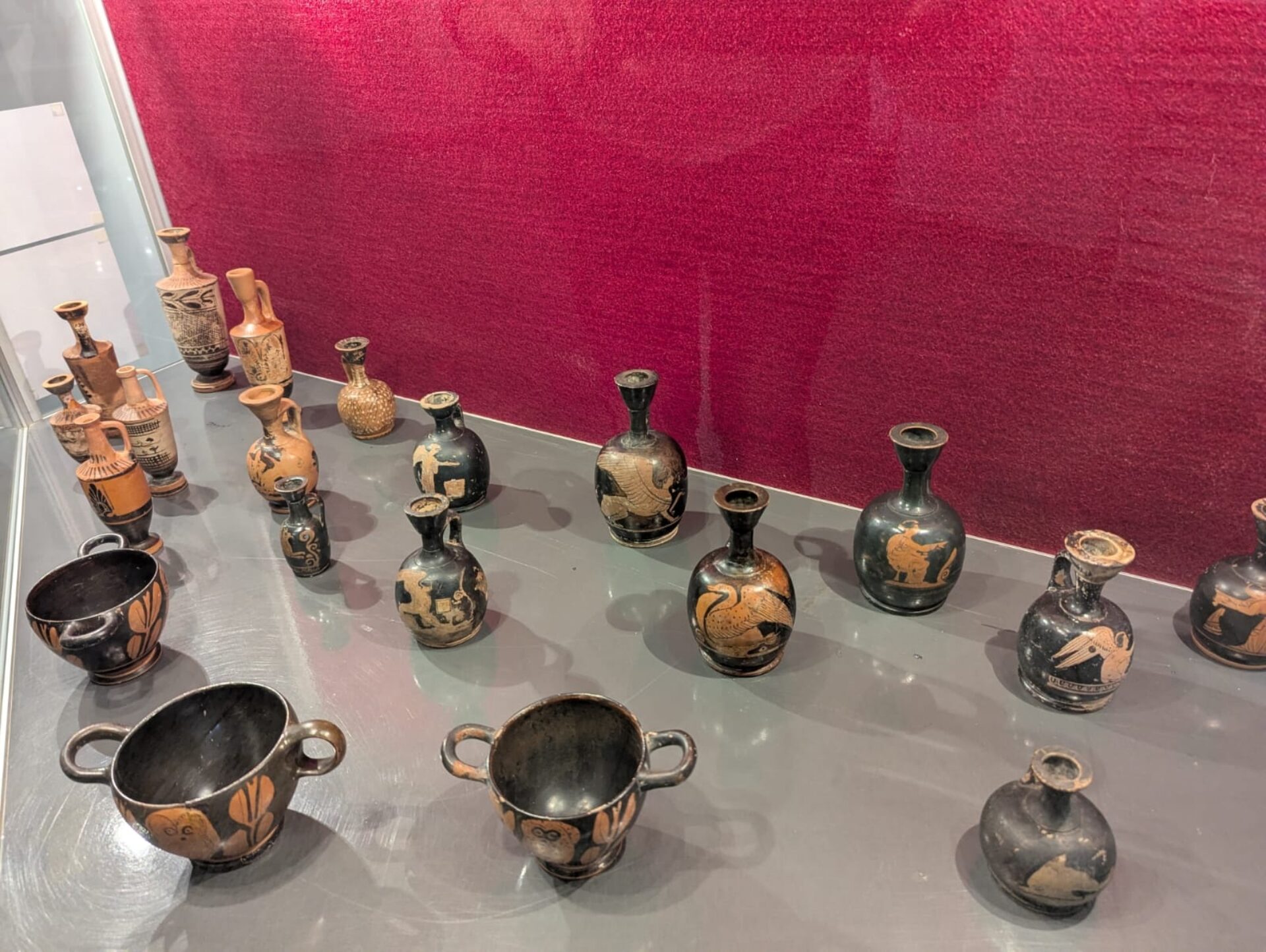 În expoziție puteți vedea vase antice, vase cu figuri roșii din colecții valoroase ale muzeelor din România, puse în valoare cu ajutorul luminilor și al detaliior scenografice de curatorii, muzeografii și conservatorii care au colaborat pentru a aduce la viață universul fabulos al Greciei Antice.