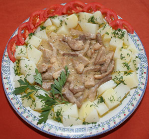 Cotletul de porc se taie julien, se dă prin pesmet și se trage la tigaie în unt încins. După ce s-a rumenit se stinge cu vin alb și se mai adaugă 50 ml apă. În momentul fierberii se adaugă smântâna și zeama de lămâie. Se condimentează cu sare, piper și rozmarin și se lasă la foc mic până ce sosul capătă consistență.