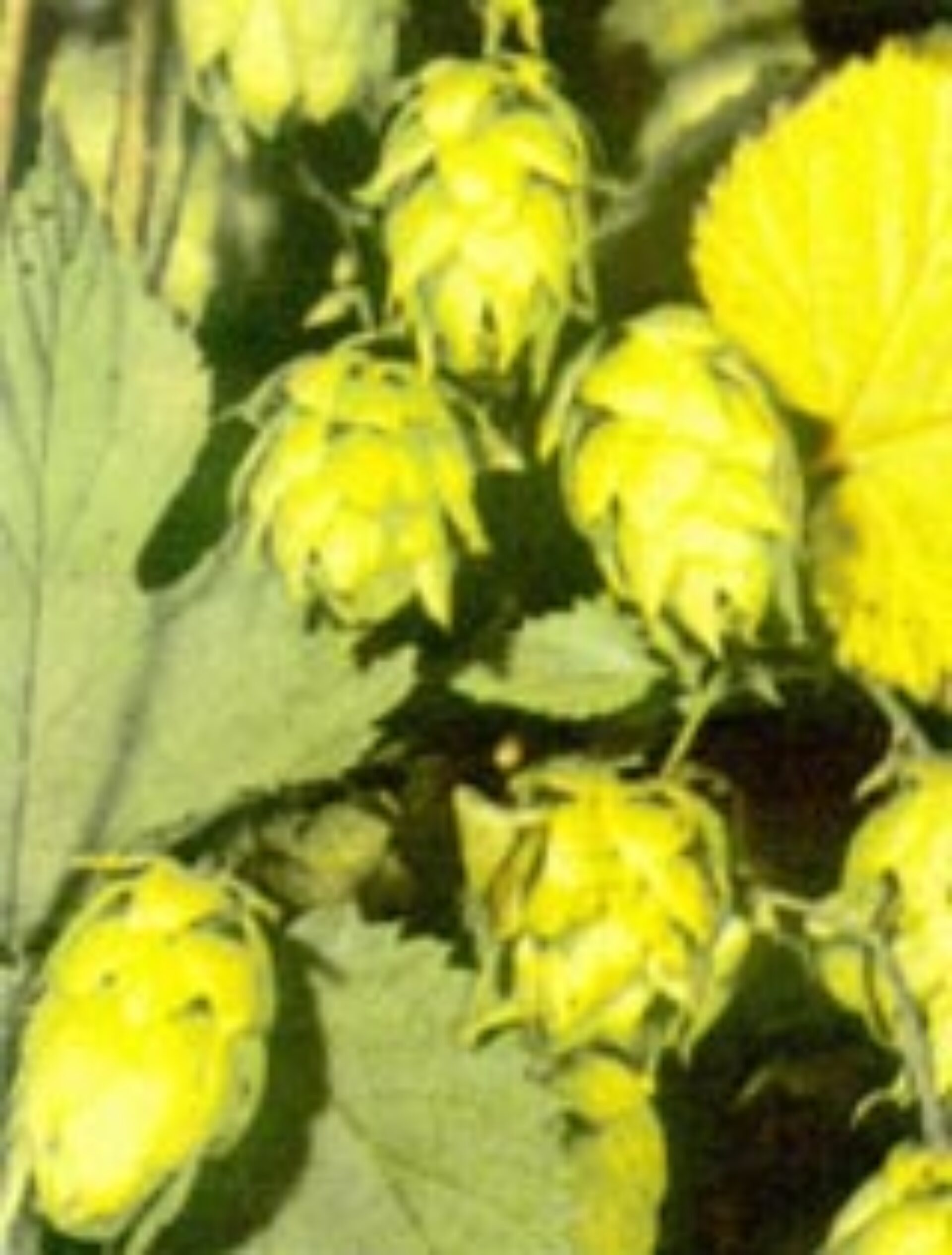 Florile sunt grupate în conuri ovoidale, lungi de 2-3 cm, pudrate cu un praf fin, rășinos, galben-auriu, numit lupulină.