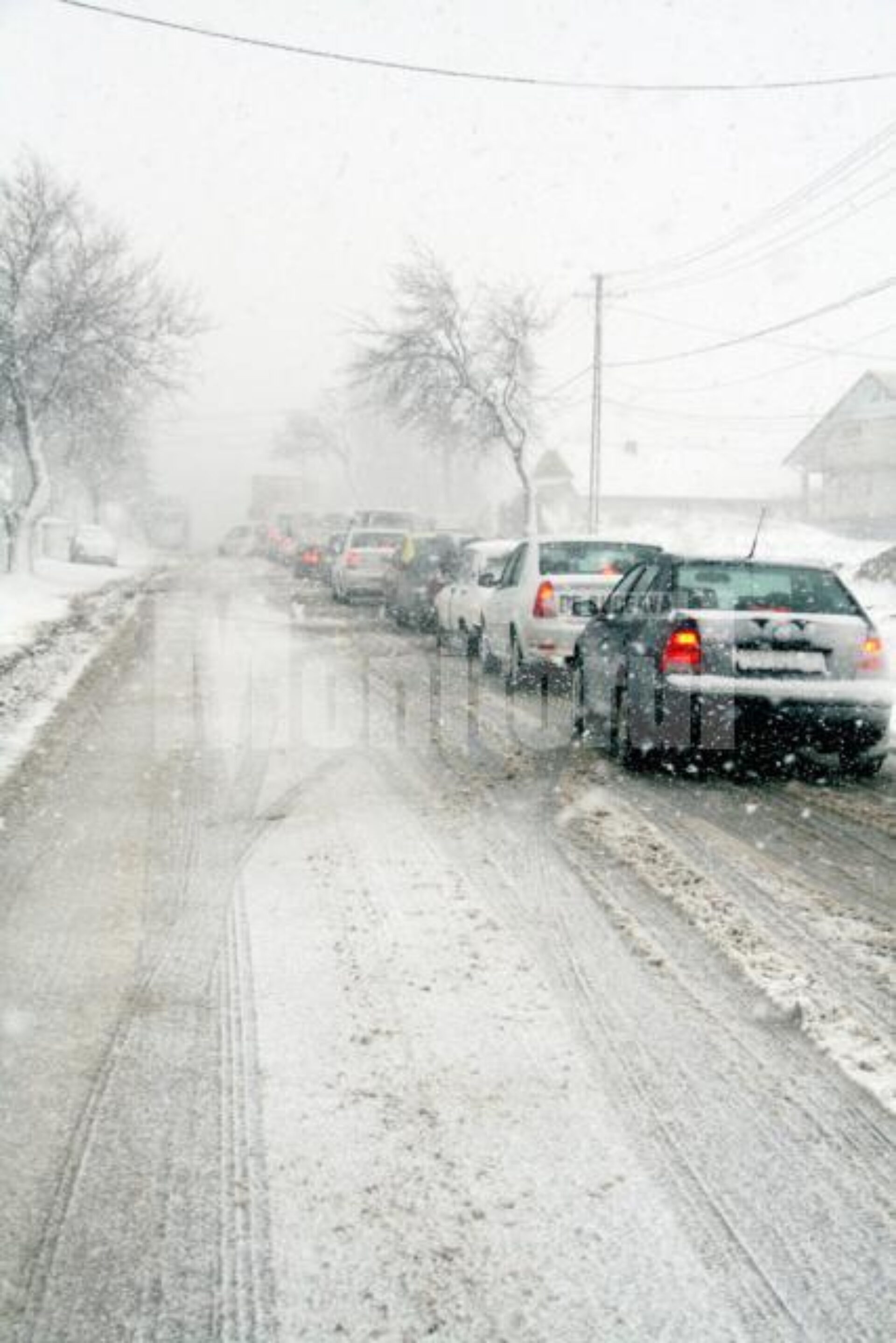 Tirurile au putut pleca mai departe doar după ce șoferii și-au montat lanțurile antiderapante.