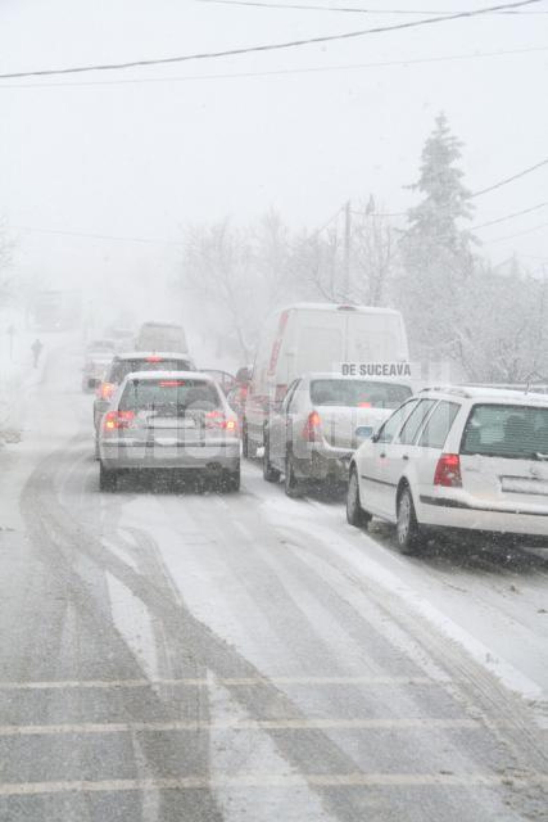 A fost nevoie de doar jumătate de zi de ninsori pentru ca circulația în județul Suceava să ia forma unui imens haos. Probleme s-au înregistrat aproape peste tot, fie că a fost vorba de drumuri naționale, județene sau drumurile din municipiul Suceava. Depășiți de situație, drumarii s-au rugat ca ninsoarea să se mai oprească pentru a putea interveni în mod util. Cele mai mari probleme s-au înregistrat pe drumul european 85, Fălticeni – Suceava – Siret. Cu un șef aerian care nu știa mai nimic din ce se întâmplă pe teren, drumul european 85 a fost ieri piatra de încercare pentru toți șoferii care au avut ghinionul să se afle în trafic după orele 14.00.