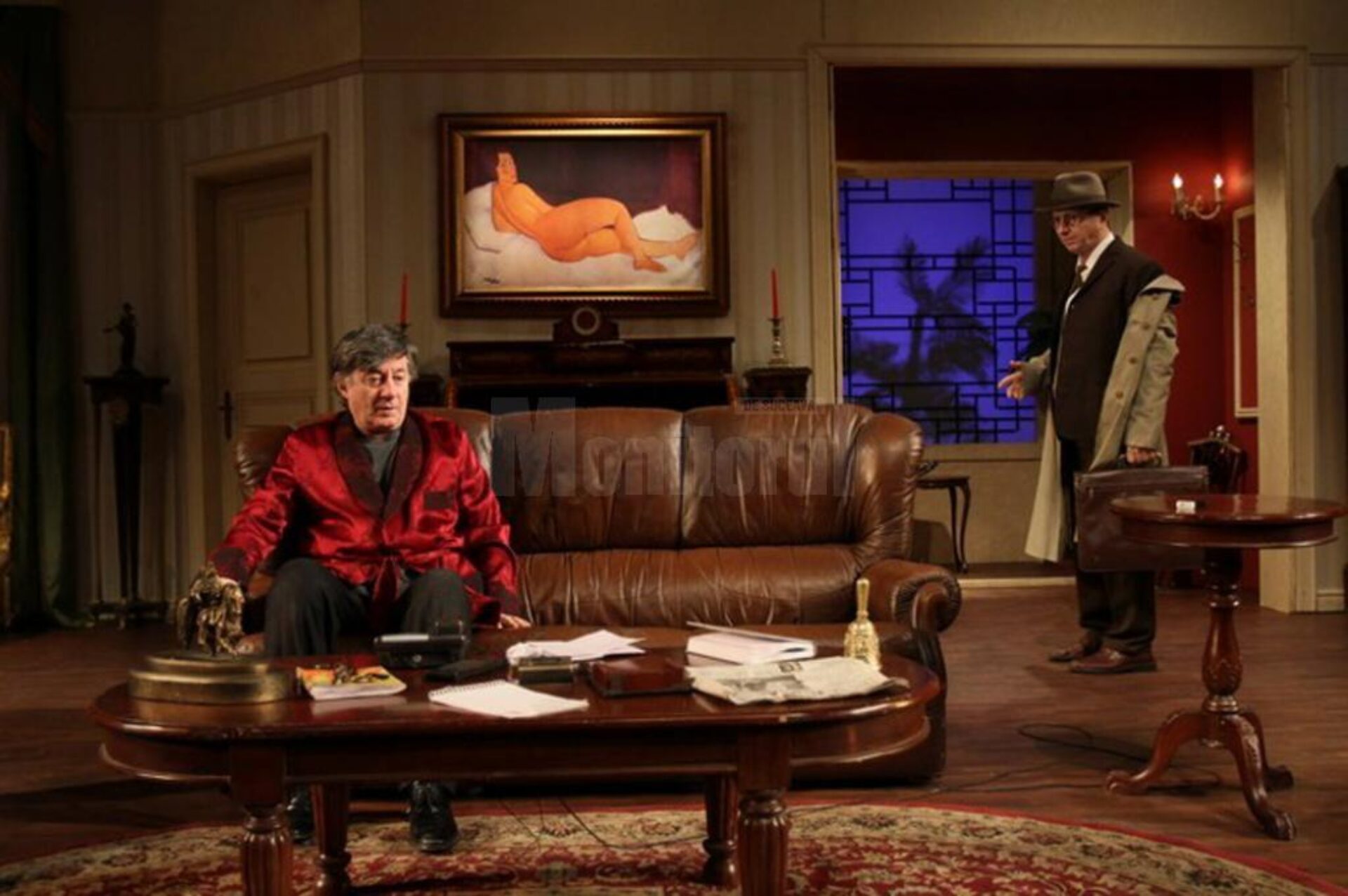Traducerea piesei este realizată de Tudor Țepeneag. Regia spectacolului: Ion Caramitru. Scenografia: Florilena Popescu Fărcășanu. Francis Veber are marele talent de a scrie niște fabule bine împănate cu lovituri de teatru. „Creațiile lui, în care cruzimea se împletește cu blândețea, se bucură de un mare succes de public. Veber stăpânește arta de a dibui personaje simple, dar pline de contradicții, care ne seamănă atât de bine când el le adaugă acea tușă de candoare, de naivitate, de stângăcie, pe care le face să evolueze în situații dificile, creând astfel comicul de situație de care spectatorii nu se mai satură…”, după cum au spus organizatorii.