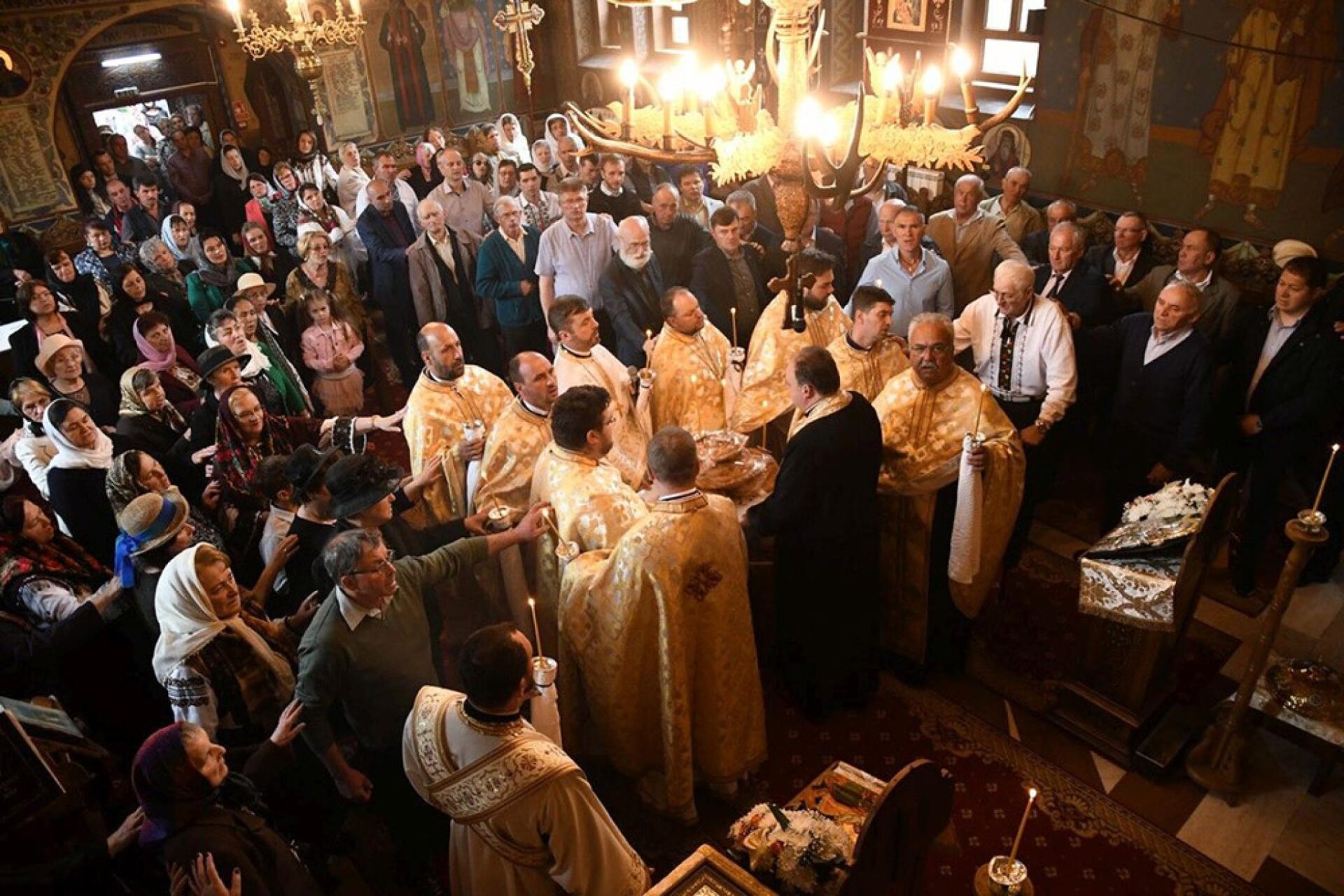 Sute de credincioși au participat sâmbătă, 21 mai 2022, la hramul Bisericii „Sfinții Împărați Constantin și Elena” din Gura Humorului. Un sobor de preoți și diaconi a oficiat Sfânta Liturghie și Trisaghionul pentru cei adormiți.