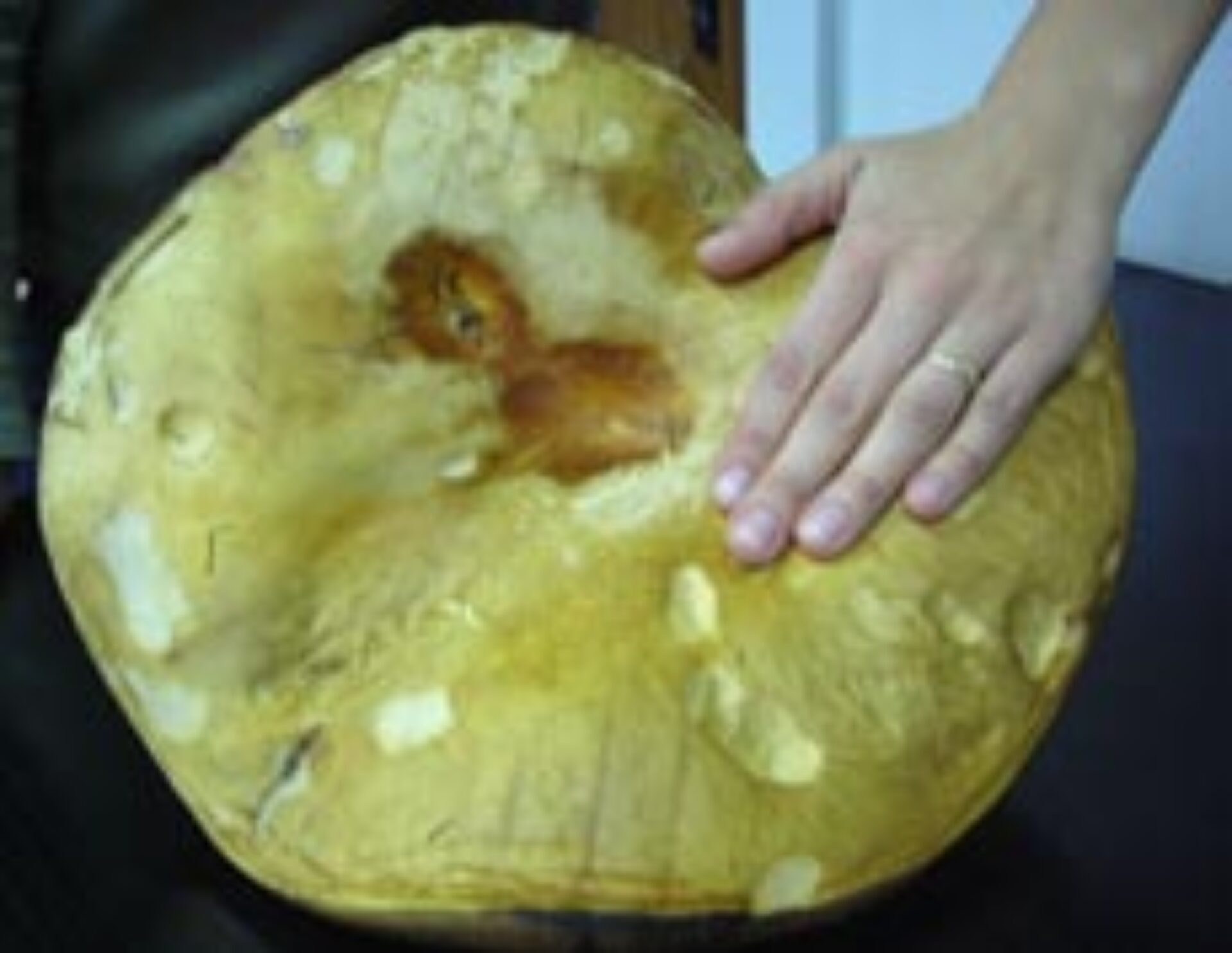 Un hrib cât zece…Cam așa s-ar defini hribul uriaș pe care l-a găsit o femeie din Suceava în apropierea popasului de la Palma. Ciuperca uriașă, numită în latinește „Bolentus Edulis”, cântărește 1,5 kilograme, are diametrul de 33 de centimetri și înălțimea de 21 de centimetri. Carmen Năsăudeanu, de profesie farmacistă, se afla vineri în zona Palma la cules de măceșe când a văzut lângă un brad singuratic, expus destul de mult la soare, acest hrib impunător. Mirarea a fost mare pentru că la această dată târzie din octombrie nimeni nu s-ar mai fi așteptat să mai fie hribi prin pădure. Pe lângă hribul uriaș, femeia a mai găsit încă vreo zece hribi mai mici, numai că cel uriaș face cât toți ceilalți la un loc. Explicația ar fi că a fost lăsat să crească…. Probabil nu a trecut prea multă lume prin zonă, și, astfel, a fost ferit de pericolul de a fi cules de timpuriu. Având umiditate și căldură suficientă, hribul s-a dezvoltat „în pace”. Farmacista își amintește că în copilărie, pentru că încă de pe atunci este o împătimită a muntelui, prețuiește foarte mult plantele medicinale și fructele de pădure, a mai găsit un hrib, spune ea, mai mare decât cel găsit vineri la Palma. Asta se întâmpla undeva în zona Moldoviței. Hribul uriaș cules vineri de suceveancă arăta intact și ieri, fără să-și schimbe culoarea, și gata de a fi pus în oala de gătit. Asta este și intenția femeii care a avut norocul de a găsi o astfel de ciupercă comestibilă în pădure, să pregătească pentru familia sa o ciulama de hrib cu smântână și o mâncărică condimentată cu usturoi, meniu din care nu va lipsi mămăliguța.