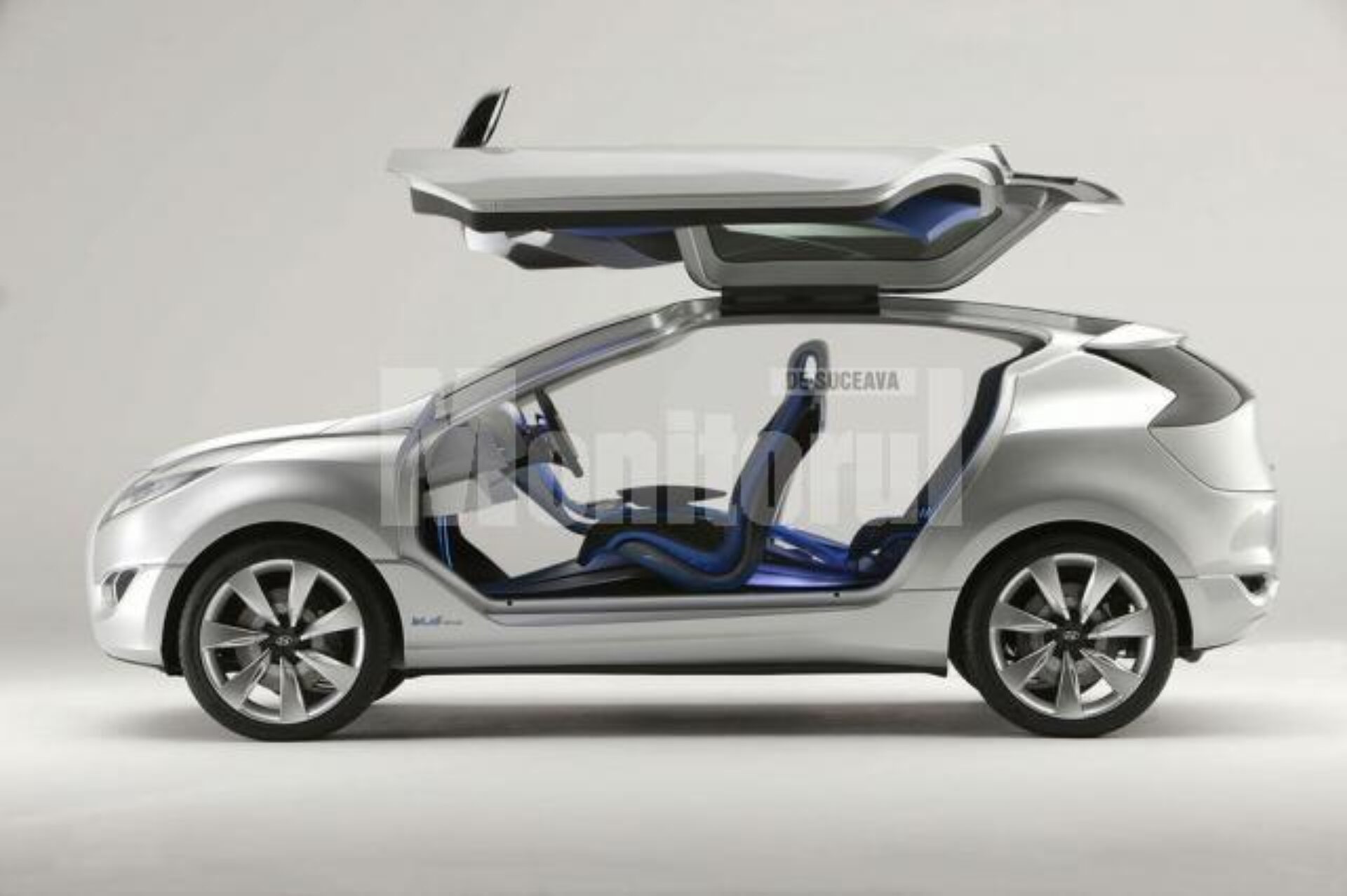 Hyundai ne arată puțin câte puțin din noua sa filozofie de design care va sta la baza următoarelor sale creații. După ix-onic, crossoverul prezentat în martie la Paris, acum este rândul unui alt exponent din aceeași clasă să își facă simțită prezența. Salonul Auto de la New York a fost rampa de lansare a conceptului Nuvis, model ce prefațează un nou SUV, de această dată urban, cu linii fluide și aspect emoțional. Pe lângă partea estetică, brandul sud-coreean dezvăluie și tendințele în materie de tehnologie, evident ecologice. Conceput la Centrul de Design din California, prototipul dispune de patru locuri la interior și un tren de rulare hibrid. Tehnologia utilizată este o arhitectură Hybrid Blue Drive ce include un motor clasic pe combustibili fosili și unul electric alimentat cu energie provenită de la acumulatori litiu polimer. Tandemul benzină-electric înseamnă de fapt propulsorul Theta II de 2,4 litri și o unitate electrică ce furnizează 41 de cai putere și un cuplu impresionat care atinge 205 Nm. În funcție de condițiile de rulare, propulsia mașinii este asigurată de unul din motoare, puterea acestora fiind distribuită la roți prin intermediul unei cutii automate cu 6 trepte. Sistemul Hybrid Blue Drive mai include și tehnologii precum start-stop și de frânare regenerativă care ajută la economisirea carburantului și la scăderea emisiilor. Hyundai susține că exteriorul conceptului Nuvis este inspirat din mișcarea valurilor oceanului, dorința designerilor fiind de a sublinia mișcarea chiar și atunci când mașina stă pe loc. Noul crossover se dorește a fi o trimitere la un automobil modern pentru familiile viitorului, o mașină pretabilă pentru mai multe activități cotidiene. „Scopul nostru a fost de a crea o mașină <vie>, aflată permanent în mișcare, unde șoferul și pasagerii să fie parte integrantă a acesteia”, a declarat John Krsteski, design manager la Hyundai. „Nu există linii de design statice la exterior sau interior”, subliniază Krsteski. O particularitate a mașinii sunt ușile tip „aripă de pescăruș”, cu un unghi de deschidere mare care facilitează accesul și ieșirea lejeră din habitaclu. De asemenea, modul constructiv al portierei reprezintă o altă particularitate, un concept inedit care ar putea fi regăsit și pe modelul de serie. Jantele de 22 inch, ornamentele cromate ale spoilerului cu LED-uri integrate, plafonul panoramic și luneta foarte scurtă sunt alte componente cu o linie originală care plusează la capitolul imagine. Nuvis nu este doar un posibil crossover urban, ci un model ecologic, atrăgător, cu dotări și aspect premium.