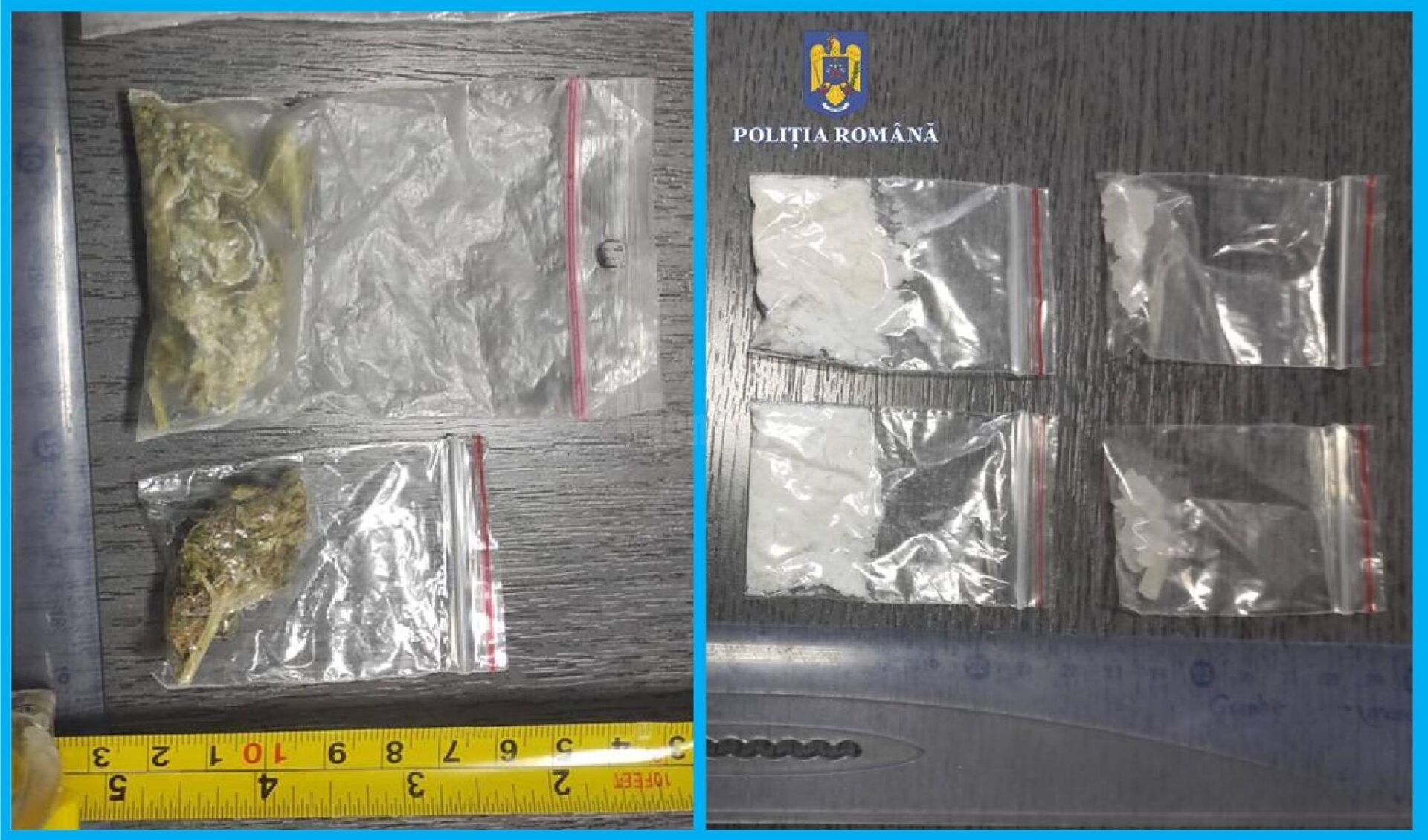 Au fost depistați patru tineri care dețineau asupra lor substanțe susceptibile a face parte din categoria drogurilor de risc sau mare risc. După cum se vede și în imagini, a fost vorba și de substanță vegetală, și de praf alb.