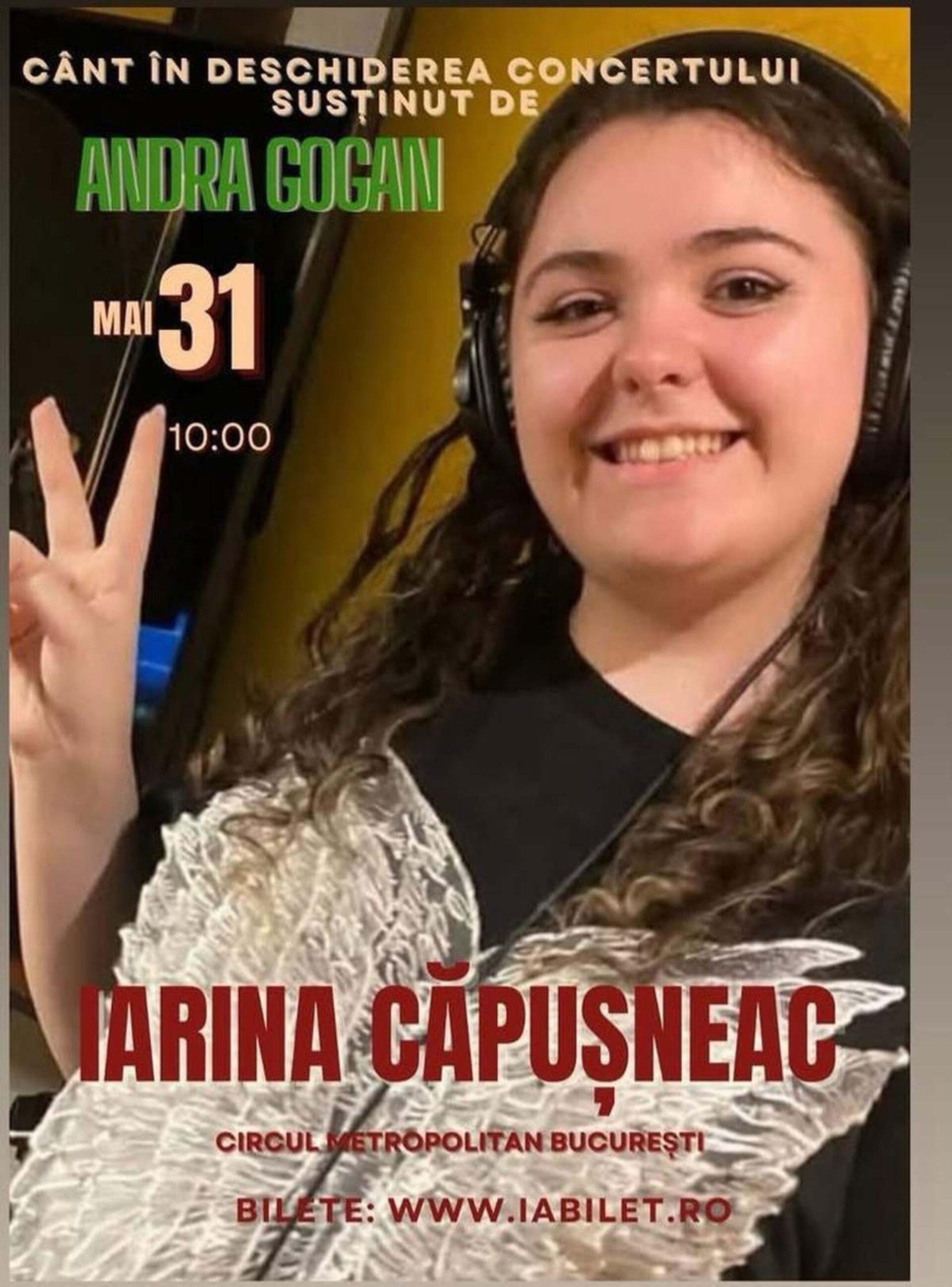În urmă cu un an, Iarina a fost cooptată solistă în Corala de fete ”Ciprian Porumbescu” a Colegiului ”Ștefan cel Mare”, coordonată de preotul profesor Lucian Tablan–Popescu.