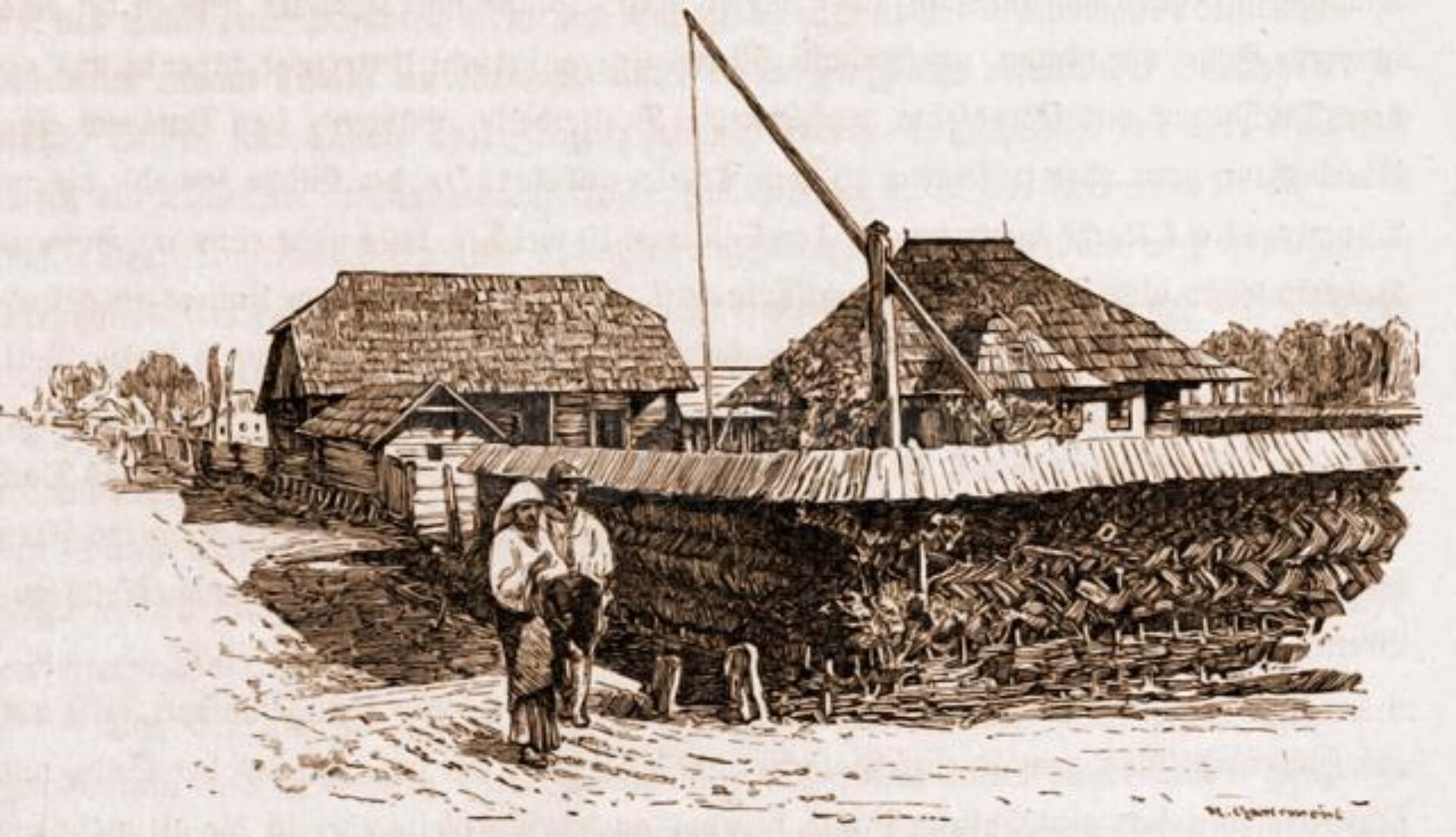 Casă românească din Horodnic – desen de Mattias Adolf Charlemont (1820-1871)