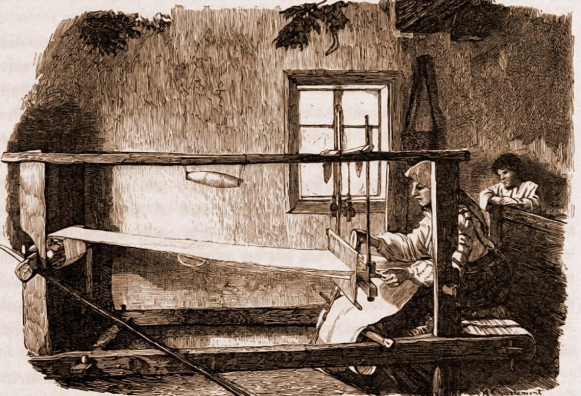 Româncă, țesând – desen de Mattias Adolf Charlemont (1820-1871)