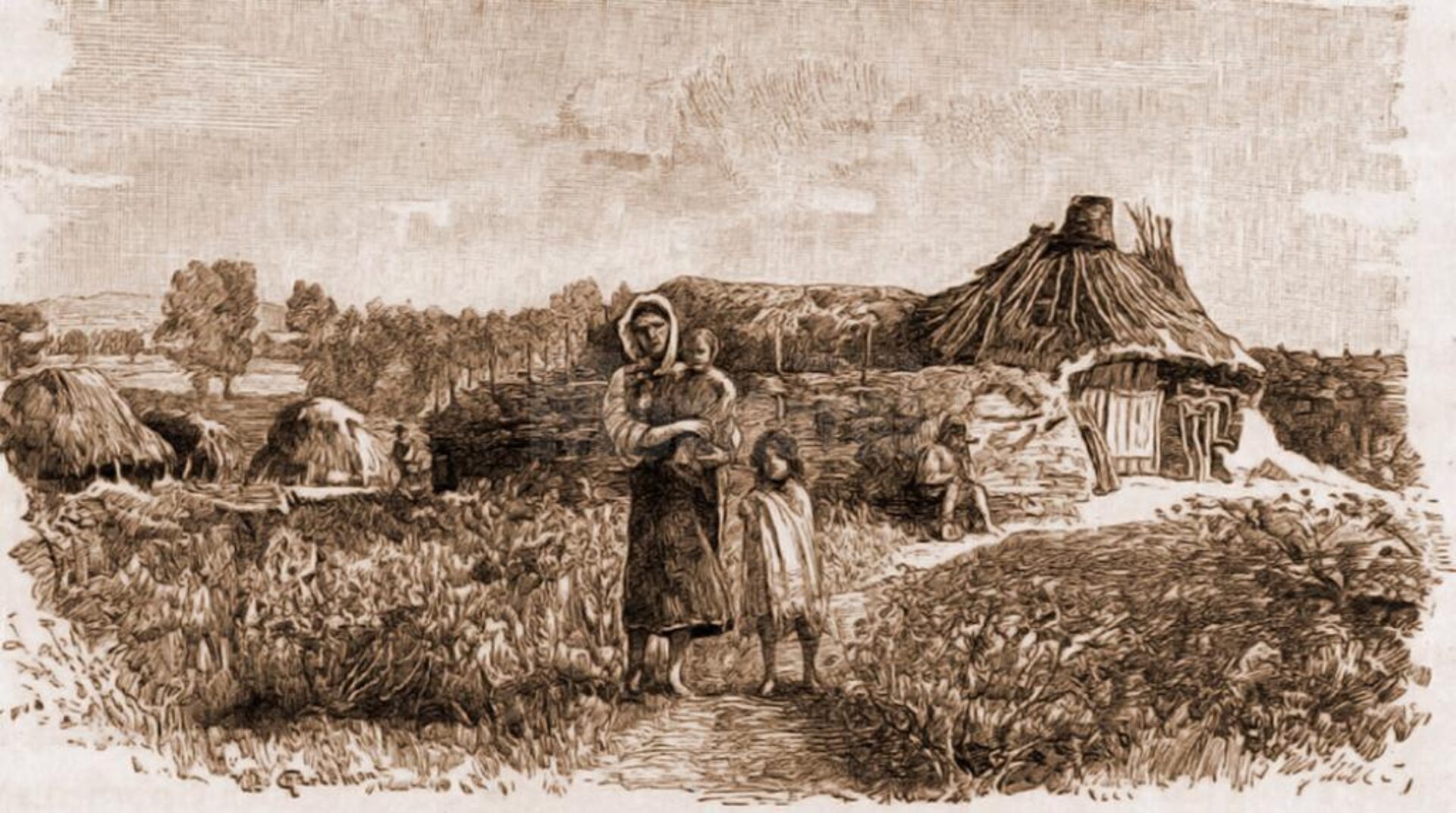 Bordeie țigănești din Ropcea – desen de Mattias Adolf Charlemont (1820-1871)