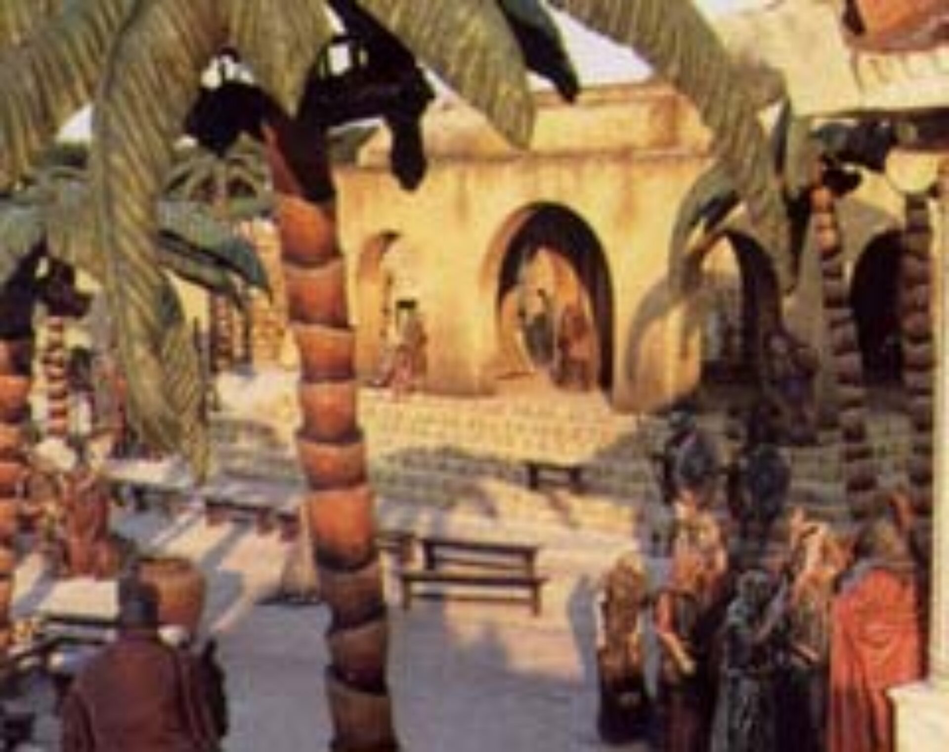 Încă de la intrarea în parc, vizitatorii pot asista, într-o grotă artificială, la nașterea lui Iisus, prezentată sub forma unei scene a natalității în mărime naturală. După acest episod, periplul continuă prin intrarea în „Ierusalim”, oraș de pe ale cărui străduțe nu lipsește nimic, nici măcar negustorii de dulciuri sau suveniruri.