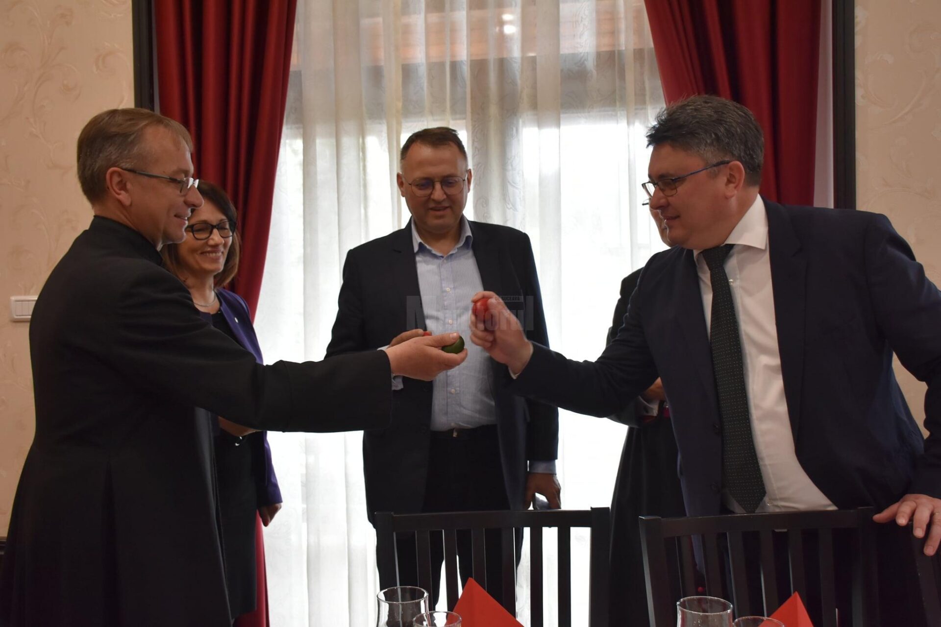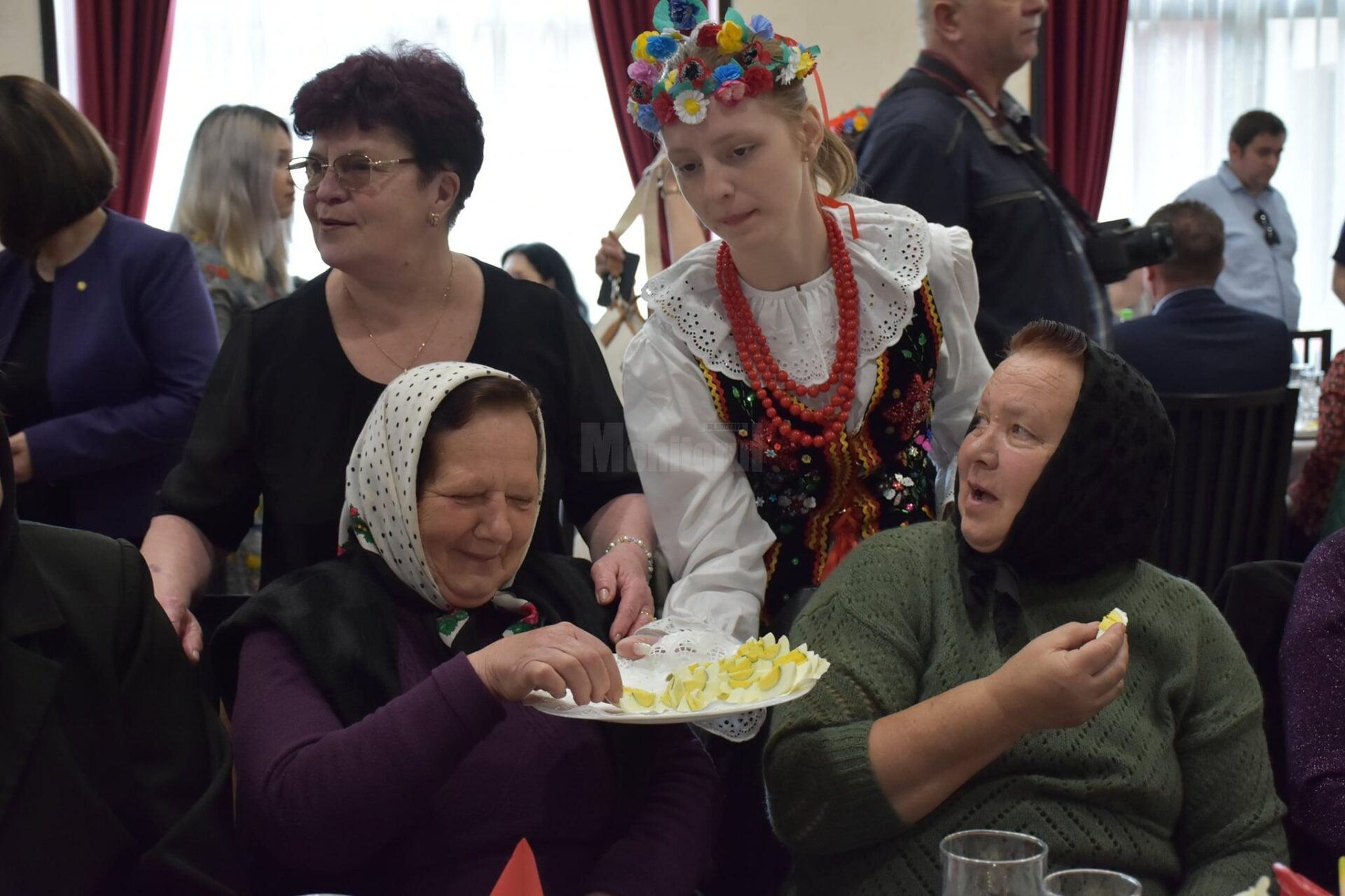 Ceremonialul împărțirii cu oul sfințit, o tradiție poloneză veche de secole, a revenit în actualitate în acest an după ce pandemia a făcut imposibilă organizarea acestui eveniment în cursul anului trecut. Bucuria revederii celor dragi a fost evidentă pe chipurile tuturor celor care au fost prezenți luni în sala de festivități de la Dom Polski din Solonețu Nou. ”Acest ceremonial a fost adus aici de emigranții polonezi când au venit pe meleagurile Bucovinei. Semnificația este aceea că oamenii își transmit urări de bine și își doresc să aibă un an cât mai rodnic și mai liniștit. Anul acesta ne vom ruga și pentru pace, pentru că avem deja două luni de război la granița României. Iar printre cei care suferă de pe urma acestui conflict sunt foarte mulți oameni care nu au nici o vină, iar mulți dintre ei s-au refugiat în România sau Polonia, iar pe o parte din ei am reușit să îi ajutăm așa cum a fost în puterile noastre”, a arătat deputatul Ghervazen Longher, președintele Uniunii Polonezilor din România. După discursurile oficialităților, Eminența Sa Iosif Păuleț, episcop al diecezei de Iași, și preotul Stanislav-Ioan Cucharec, împreună cu preoții din decanatul de Bucovina, au sfințit bucatele, iar apoi oamenii și-au făcut urări de bine. La evenimentul de la Solonețu Nou au mai participat subprefecții județului Suceava: Ioan-Cristian Șologon și Alexandru-Marian Salup, precum și prim-vicepreședintele Uniunii Polonezilor din România Victoria Longher, dar și președinții și membrii filialelor Uniunii.