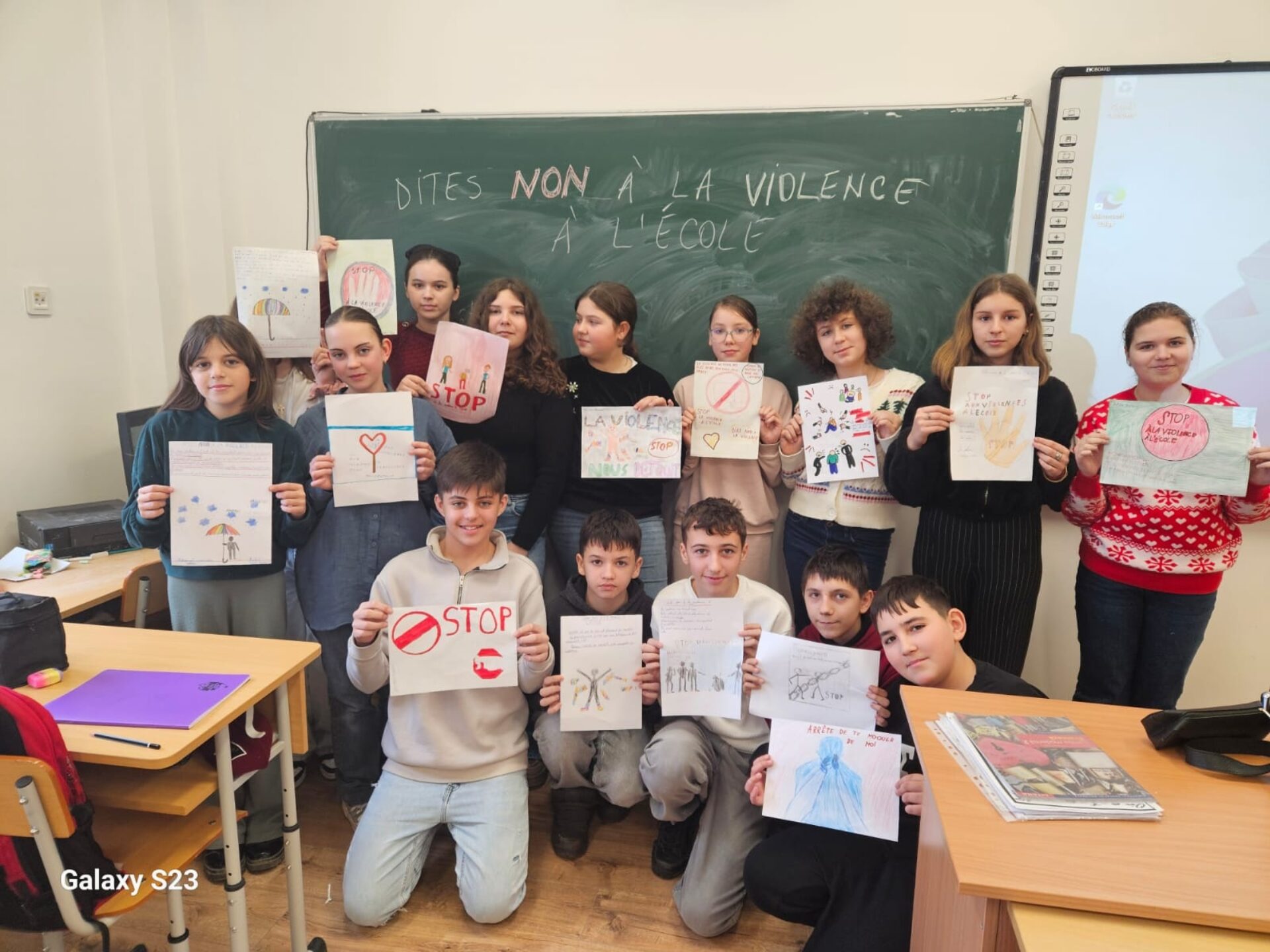 În cadrul aceluiași proiect, doamna profesor Corleciuc Veronica a coordonat realizarea de desene cu clasa a IX-a B, la ora de limba franceză, iar la clasa a VI-a, activitățile artistice au fost desfășurate sub îndrumarea doamnei profesoare Doncian Angelica. Elevii au realizat desene și postere cu tema „Dites NON à la violence à l’école!”, punând accent pe roluri, tipuri, consecințe și mituri asociate bullying-ului.
