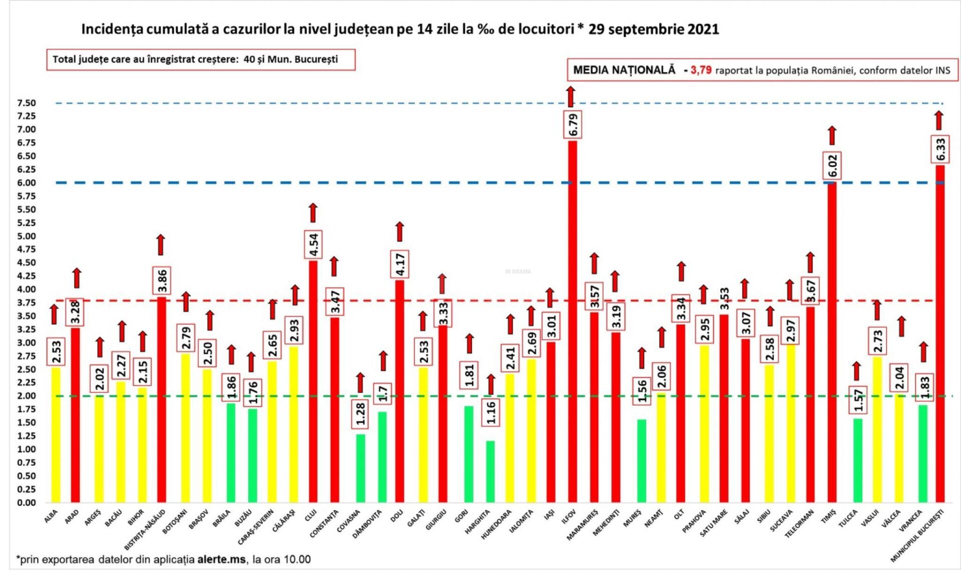 În municipiul Suceava incidența este de 4,26 la mie, cu 615 cazuri în evoluție. La această dată, peste 6 la mie incidență este în comunele Iacobeni – 6,10 la mie și Todirești – 6,26 la mie.