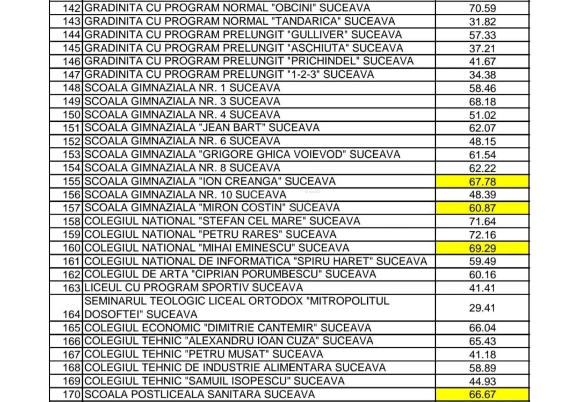 În municipiul Suceava, reluarea cursurilor cu prezență fizică se va face, începând de astăzi, 8 noiembrie, în 15 unități școlare sucevene, în timp ce în alte 14 unități școlare cursurile se vor face în regim online, conform informațiilor furnizate de profesorul Nicolae Ciprian Anton, inspector școlar general adjunct la Inspectoratul Școlar Județean (IȘJ) Suceava. Nu sunt incluse școlile particulare. Astfel, putem spune că puțin peste 50% din unitățile școlare din municipiul Suceava au rata de vaccinare a personalului angajat de peste 60%.