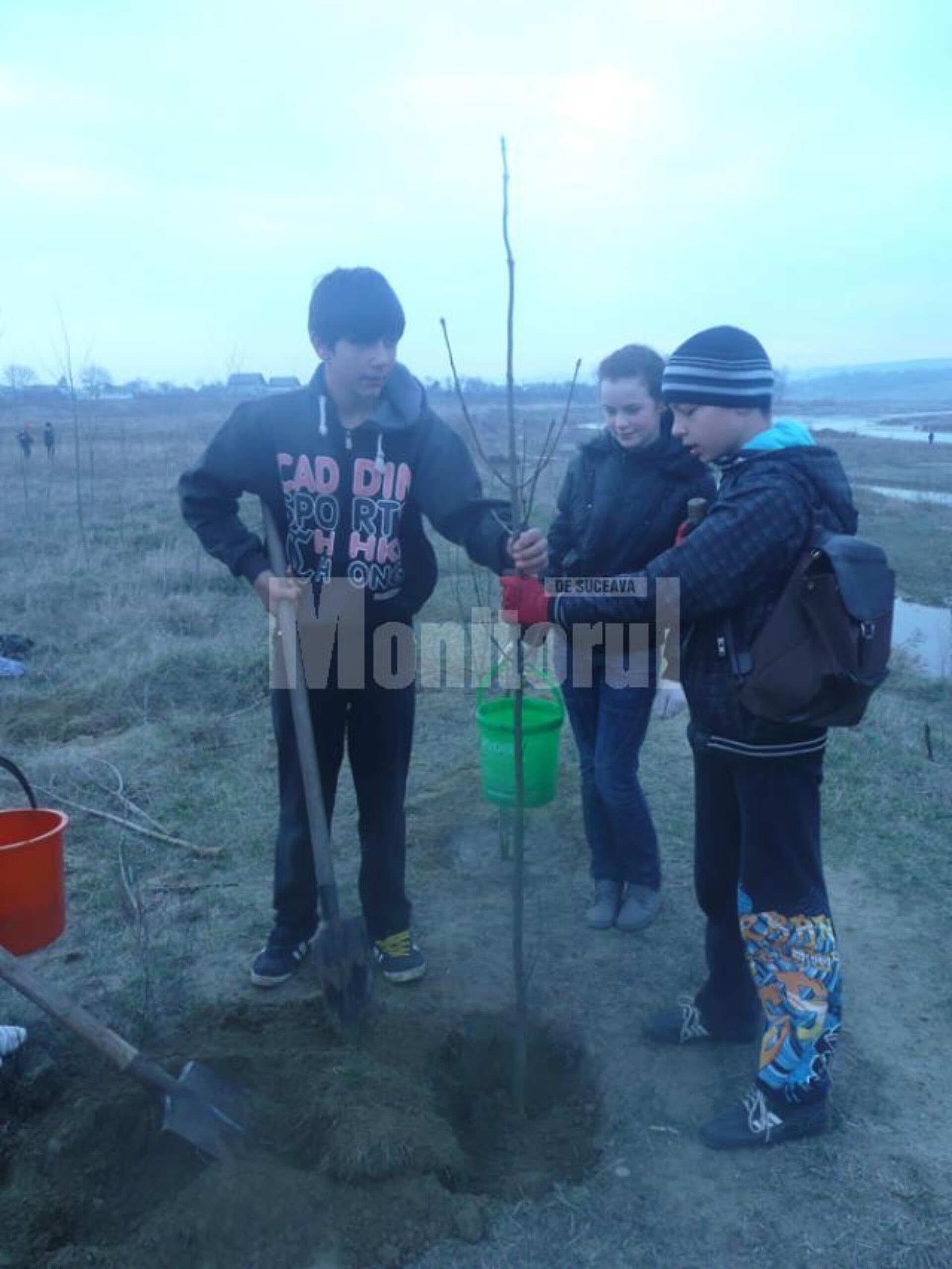 Elevii Școlii Plopeni, împreună cu elevi ai Școlii Prelipca, au demarat activitatea cu ecologizarea malului râului Suceava și a zonei care urma a fi împădurită. Primăria Salcea le-a pus la dispoziție elevilor sacii menajeri și mănușile necesare, iar după ce acțiunea a fost finalizată cu succes, elevii au primit sucuri și dulciuri.