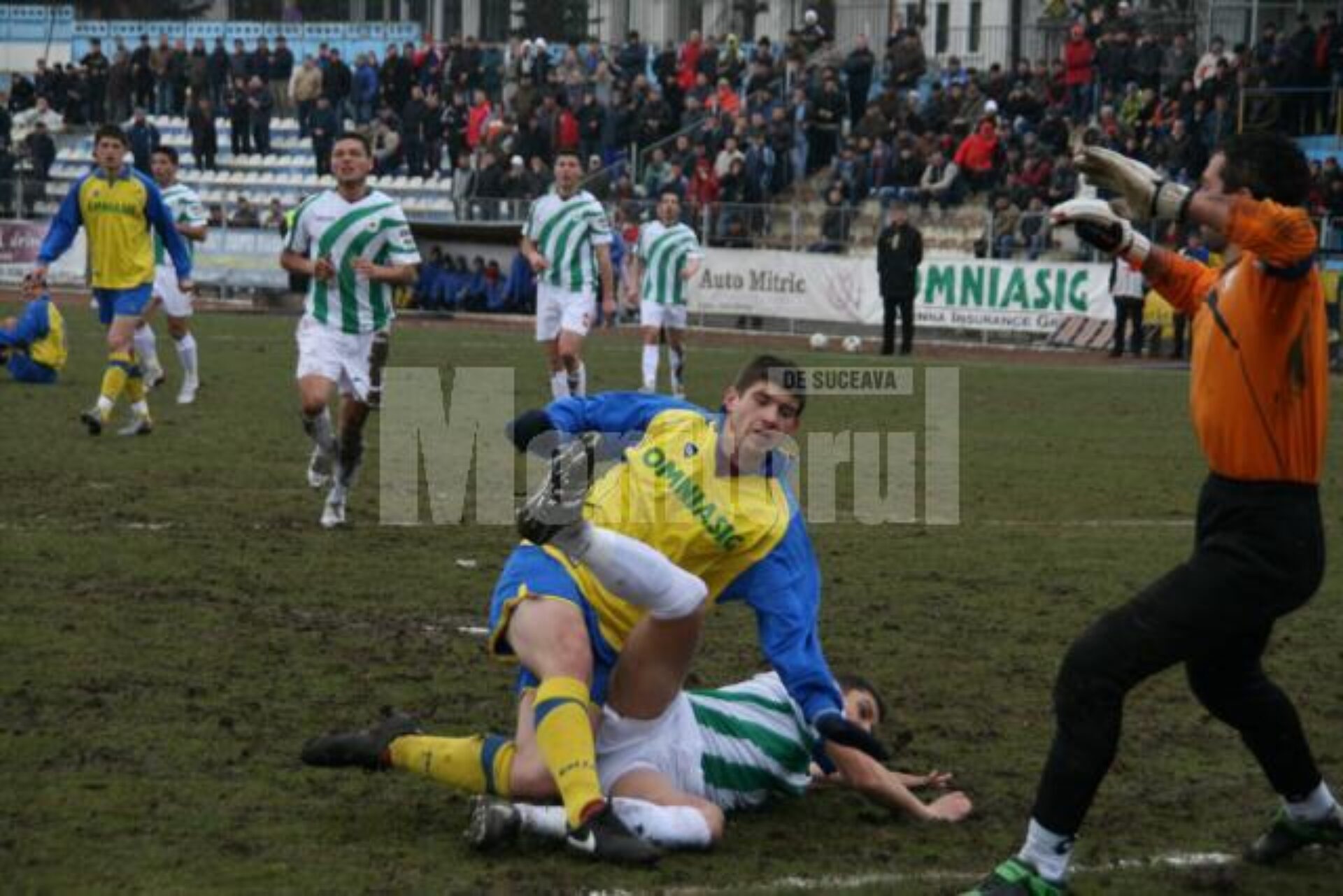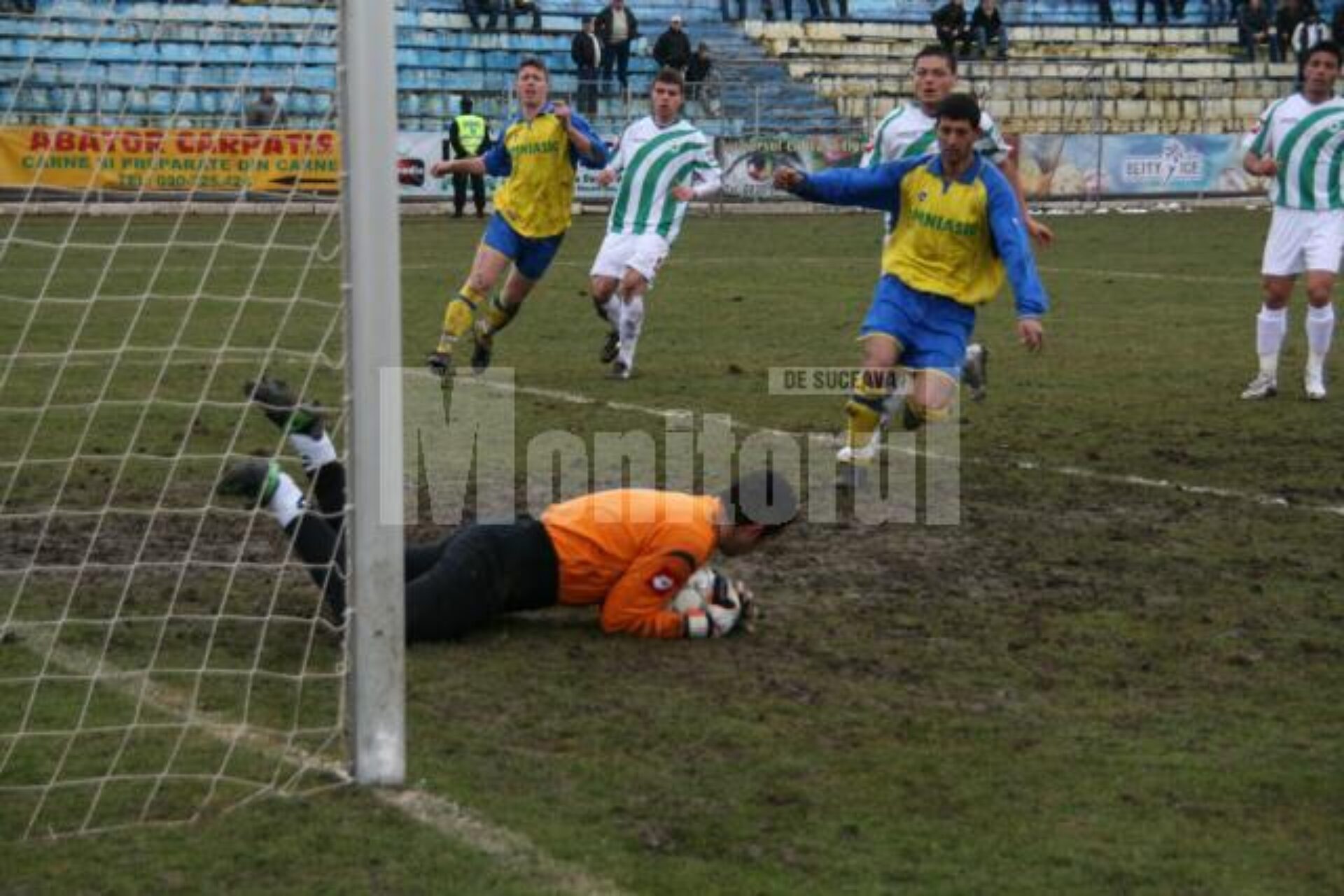 Etapa a XXI-a a Ligii secunde a adus a patra victorie stagională pentru Cetatea, care a dispus sâmbătă pe Areni cu scorul de 2-0 de Progresul București. Chiar dacă meciul nu a fost bogat în faze de poartă, cele două echipe au echipe au oferit totuși un joc antrenant, în viteză, care a plăcut celor 2.000 de spectatori aflați în tribune. După un început de joc echilibrat, sucevenii au amenințat pentru prima dată poarta adversă prin Celpan, care a șutat în stilu-i caracteristic de la aproape 30 de metri. Onciu și-a încercat și el norocul după mai bine de-o jumătate de oră de joc, însă „torpila” sa a fost scoasă miraculos din vinclu de excelentul portar al oaspeților, Popescu.