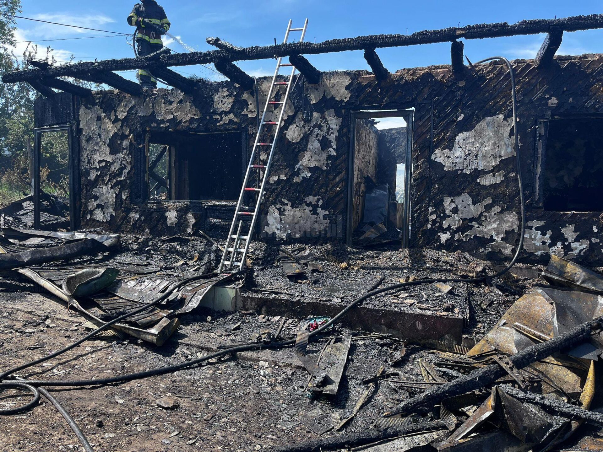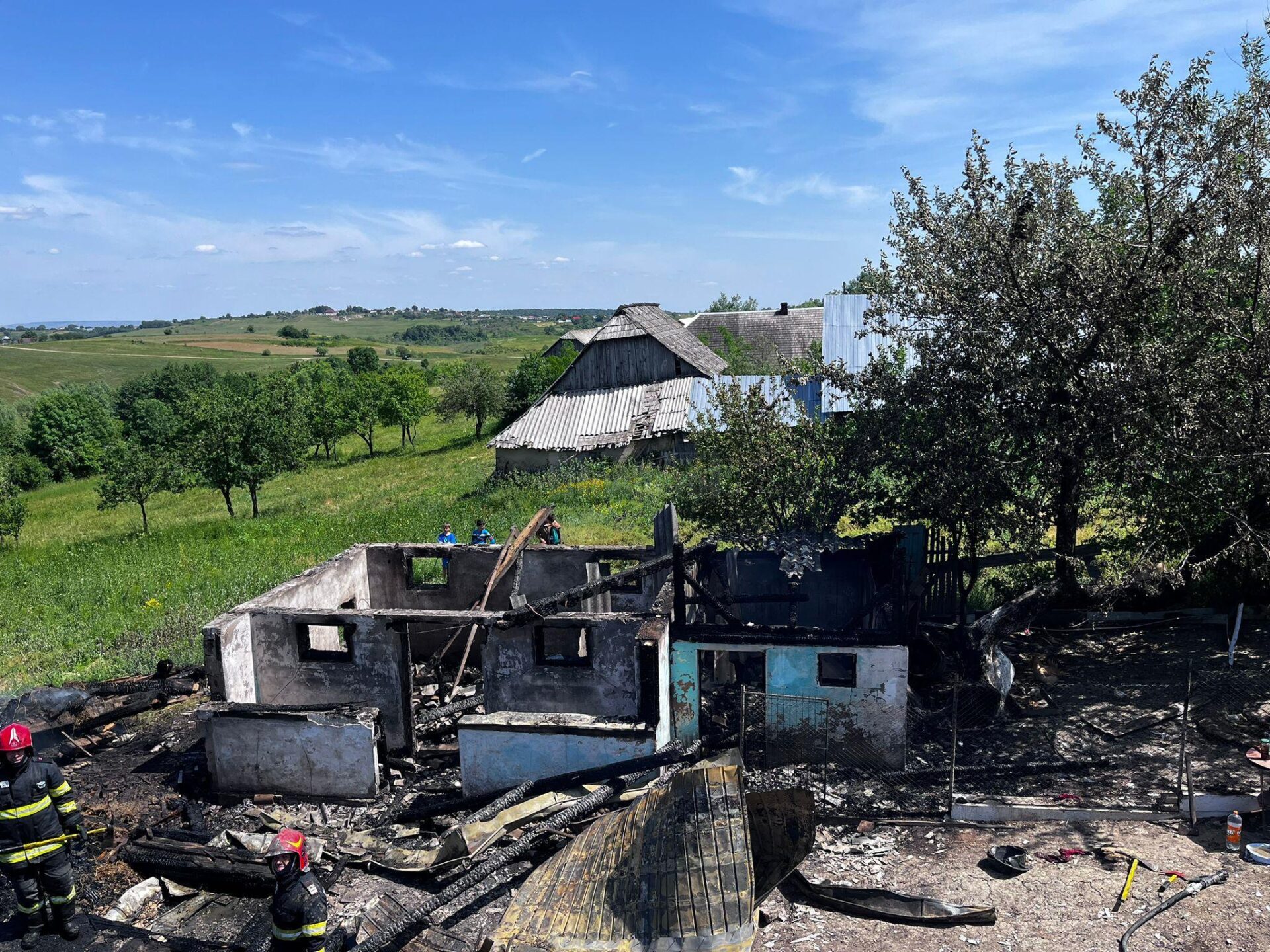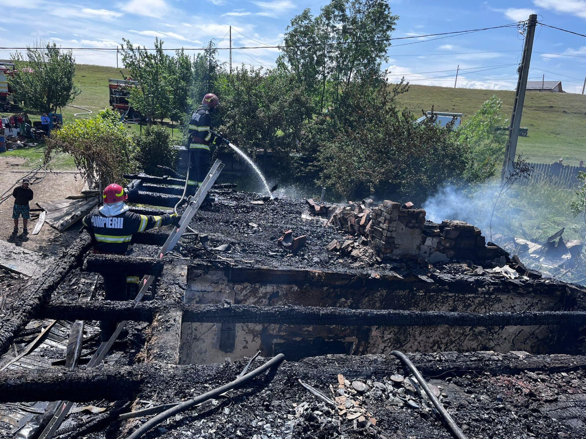 Flăcările au cuprins o casă și patru anexe gospodărești (depozit de furaje, grajd, șură și o magazie) pe o suprafață însumată de 350 de mp.