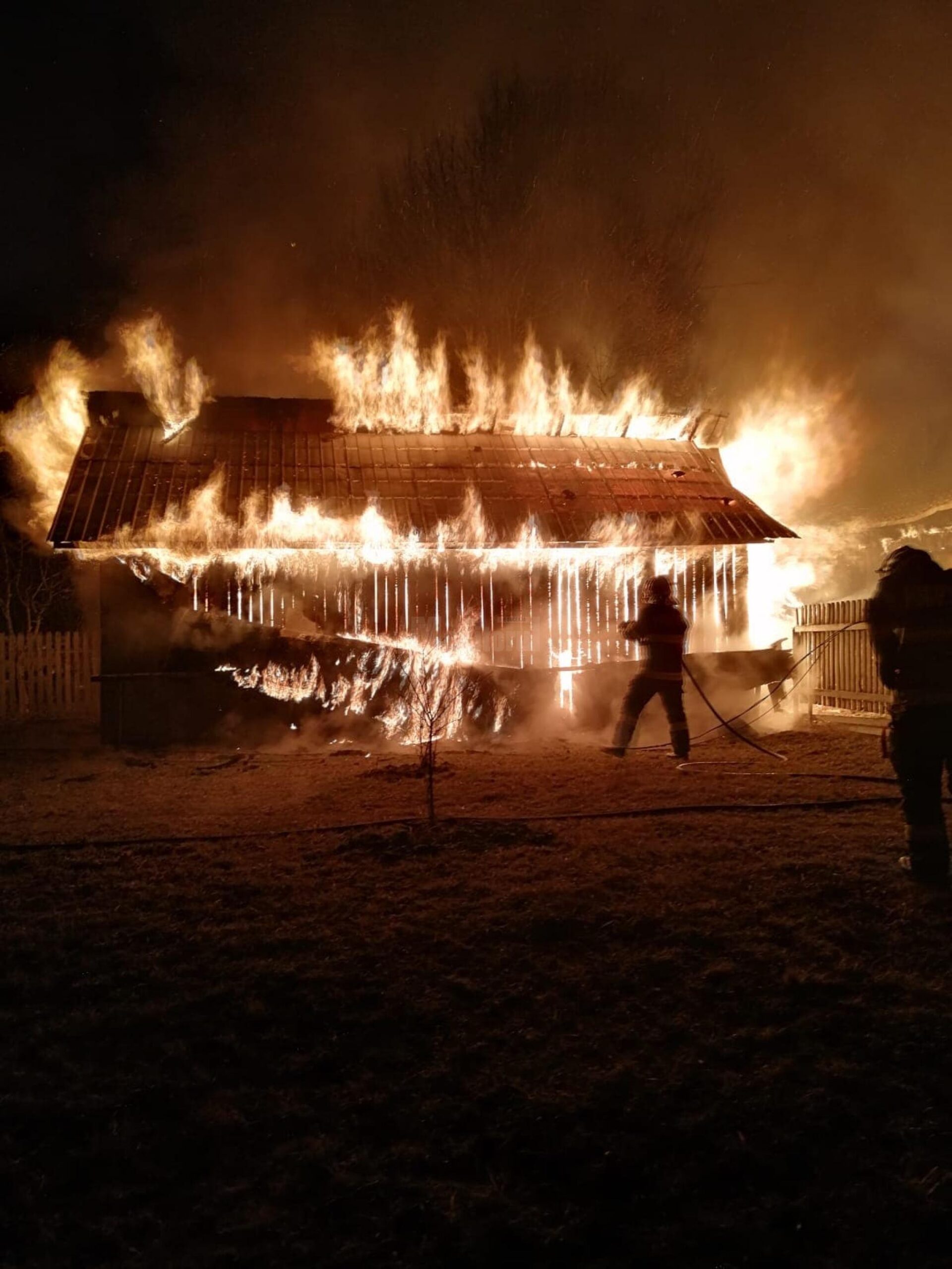 Un puternic incendiu a izbucnit joi noapte la Șaru Dornei, focul observat târziu extinzându-se la mai multe construcții din lemn, din două gospodării. Alarma de incendiu s-a dat în jurul orei 1.30 din noapte. Pompierii militari de la Vatra Dornei s-au deplasat la locul intervenției cu trei autospecială cu apă și o ambulanță SMURD. Incendiul a fost observat și anunțat cu întârziere, astfel încât, la sosirea echipajelor ardeau generalizat construcții din două gospodării, construite majoritar din lemn, cu pericol de propagare a flăcărilor la vecinătăți. Flăcările au cuprins și trei mașini, două aflate într-un garaj iar a treia în apropiere. De altfel, focul a pornit de la una din mașinile din garaj. Pompierii au finalizat intervenția abia în jurul orei 5.30 dimineață. ” Incendiul a izbucnit de la un autoturism, aflat în garaj, cel mai probabil din cauza unui scurtcircuit produs la un conductor electric defect”, a declarat locotenentul Alin Găleată, purtătorul de cuvânt al pompierilor militari suceveni. Evaluarea de după incendiu arată că au ars un garaj și o magazie, corp comun, pe aproximativ 130 mp, și o altă construcție anexă, corp comun, compusă din adăpost de animale și o magazie, pe 45 mp. Flăcările s-au propagat și la o magazie din gospodăria învecinată, care a ars pe 40 mp. Focul a distrus și cele trei autoturisme. Au mai ars bunuri de uz casnic, scule și unelte diferite, circa 15 metri cubi lemn de foc și altele. S-au degradat elemente de tâmplărie din PVC (două uși și patru ferestre) și aproximativ 80 mp din izolația exterioară a unei case de locuit. Pompierii au transmis că au salvat două case de locuit și restul anexelor gospodărești, cu bunurile aferente.