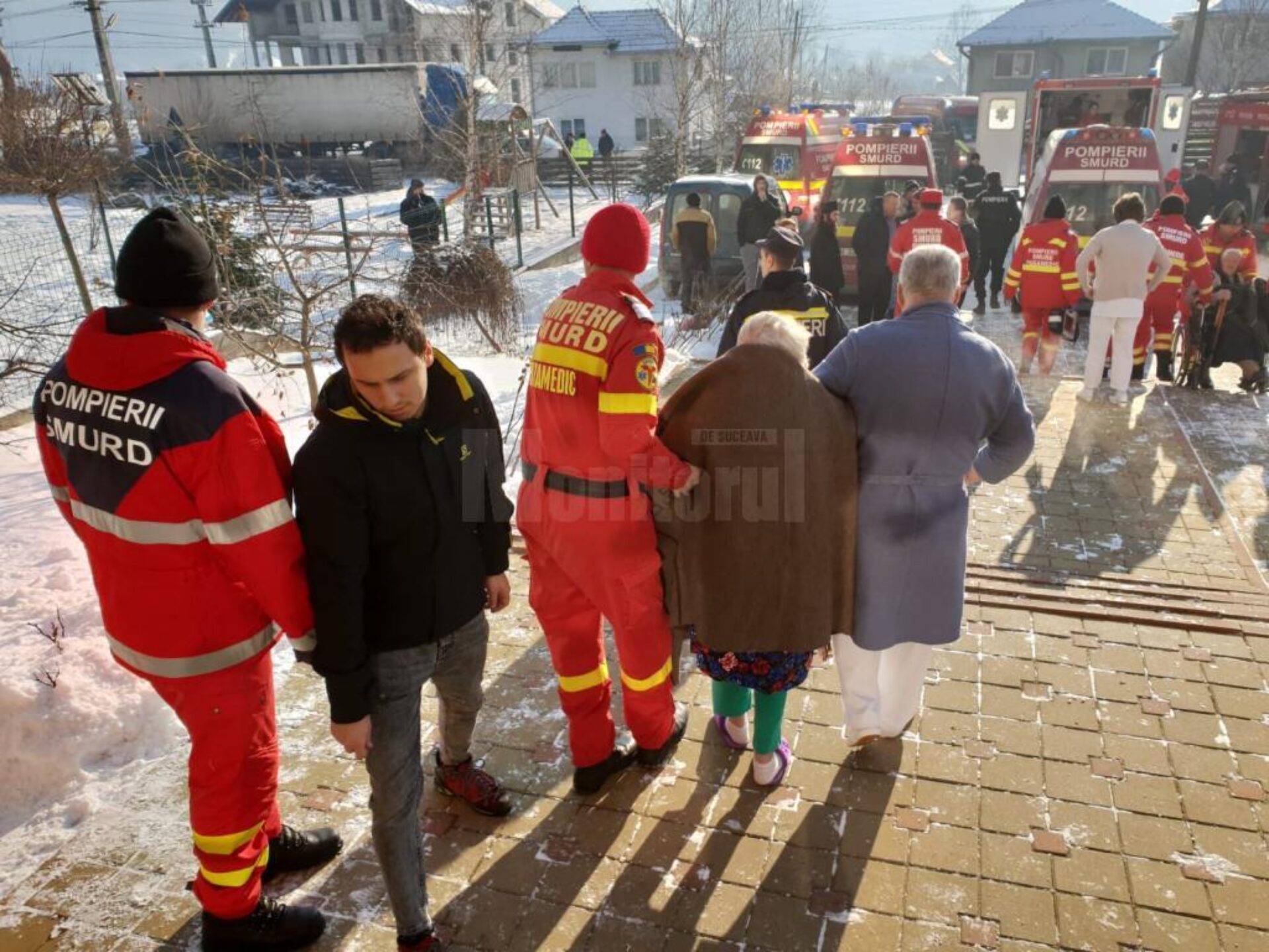 Vârstnicii evacuați din imobil au fost transportați de echipajele SMURD la un alt centru, tot în localitatea Vama.