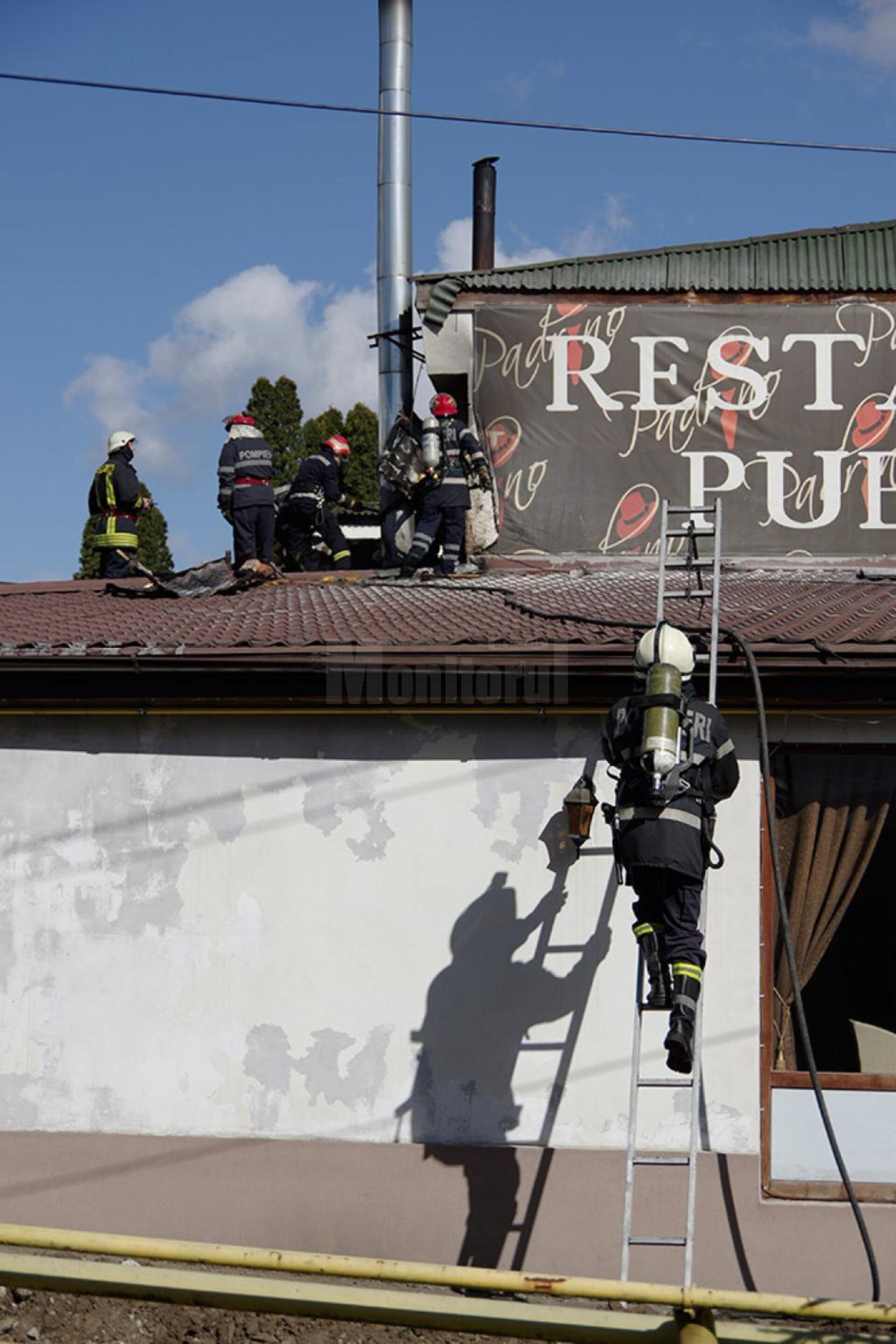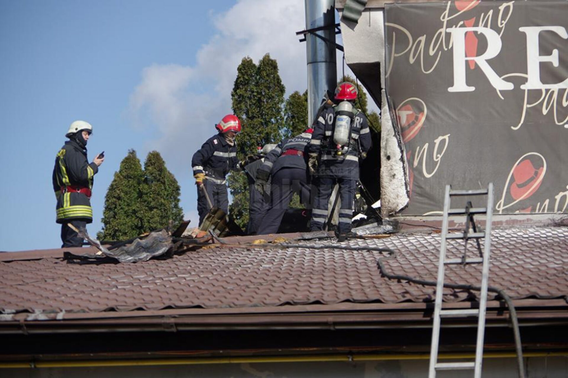 Pompierii de la Detașamentul Suceava au intervenit, ieri dimineață, la un incendiu izbucnit la acoperișul restaurantului Padrino de pe strada Universității, focul fiind localizat în zona coșului de evacuare a fumului. Alarma s-a dat în jurul orei 10.00, iar focul nu a pus, din fericire, probleme deosebite, fiind stins înainte de a se extinde și a provoca pagube mari.