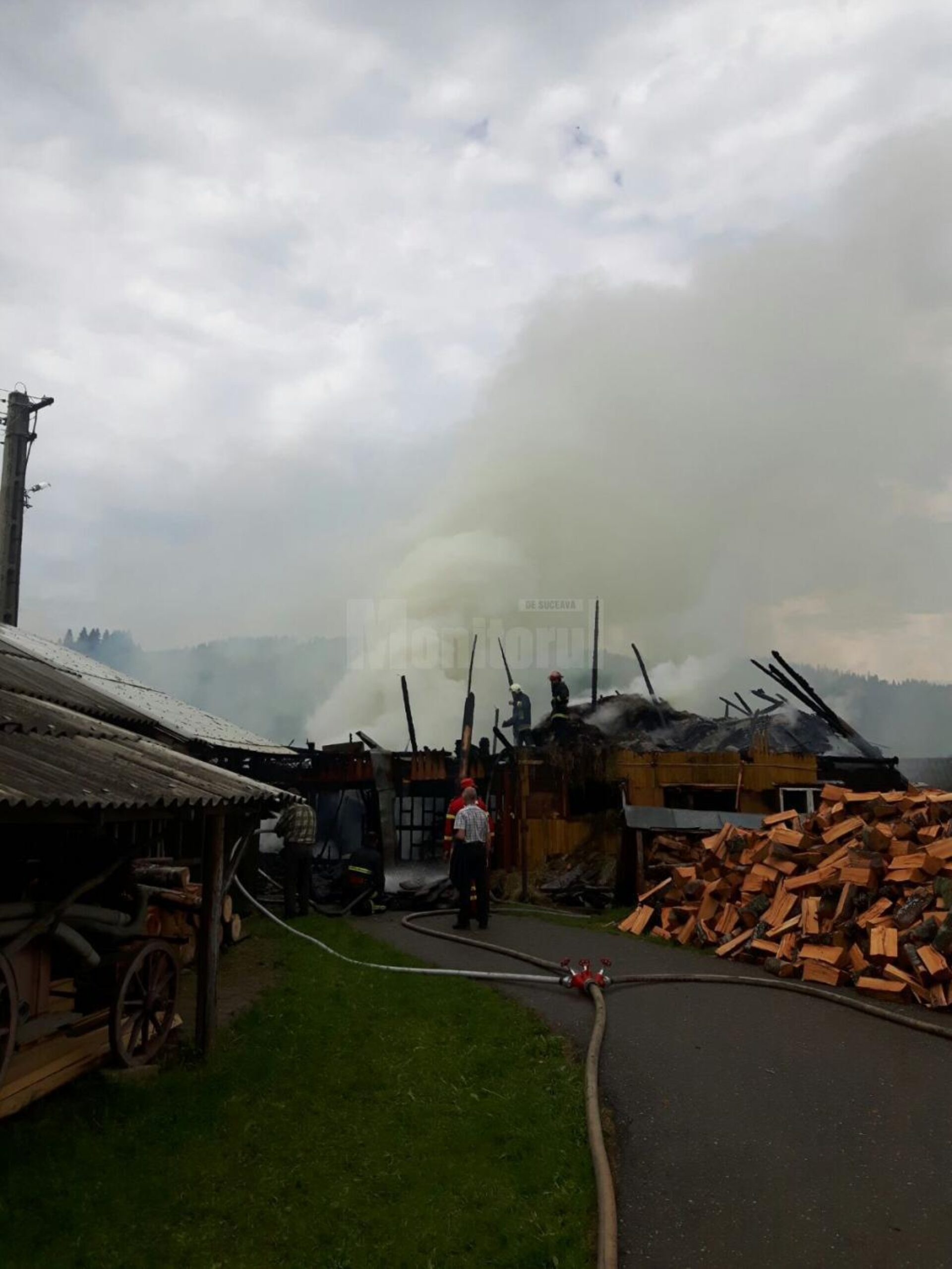 Un puternic incendiu care a cuprins anexe ale Parohiei comunei Șaru Dornei a izbucnit luni, fiind anunțat la 112 la ora 11.46.La fața locului au intervenit cu 3 autospeciale militarii Detașamentului de Pompieri Vatra Dornei, împreună cu angajații Serviciului Voluntar pentru Situații de Urgență Șaru Dornei.La sosirea echipajelor, ardeau generalizat mai multe clădiri anexe, existând pericolul de propagare la casa parohială, la alte anexe învecinate și la un depozit de lemn de foc în aer liber.Nu s-au înregistrat victime.Au ars acoperișul adăpostului de animale pe 80 mp, magazia de lemne pe 30 mp, garajul pe 30 mp, magazia de materiale pe 60 mp și acoperișul bucătăriei de vară pe 50 mp. Au mai ars un autoturism, două cositori, o drujbă, anvelope auto, materiale textile, scule diverse, materiale pentru construcții, aproximativ 10 tone de fân, 10 mc de cherestea, 10 mc lemn de foc și alte bunuri. S-au degradat pereții adăpostului de animale pe o suprafață de 120 mp și bunuri din bucătăria de vară (mobilier, textile și altele).„Cauza probabilă de izbucnire a incendiului a fost un scurtcircuit produs la un conductor electric defect”, se precizează în comunicatul pompierilor. Incendiul a fost lichidat la ora 16:05, iar pompierii au salvat casa parohială, restul anexelor gospodărești, depozitul de lemn de foc în aer liber și patru iepurași.
