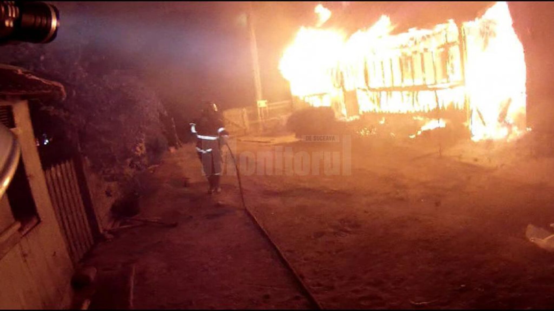 La sosirea echipajelor ardeau violent casa de locuit și acoperișul unui garaj, existând pericol de propagare la alte anexe și la o gospodărie învecinată. Pompierii s-au luptat cu flăcările până în jurul orei 6.00.