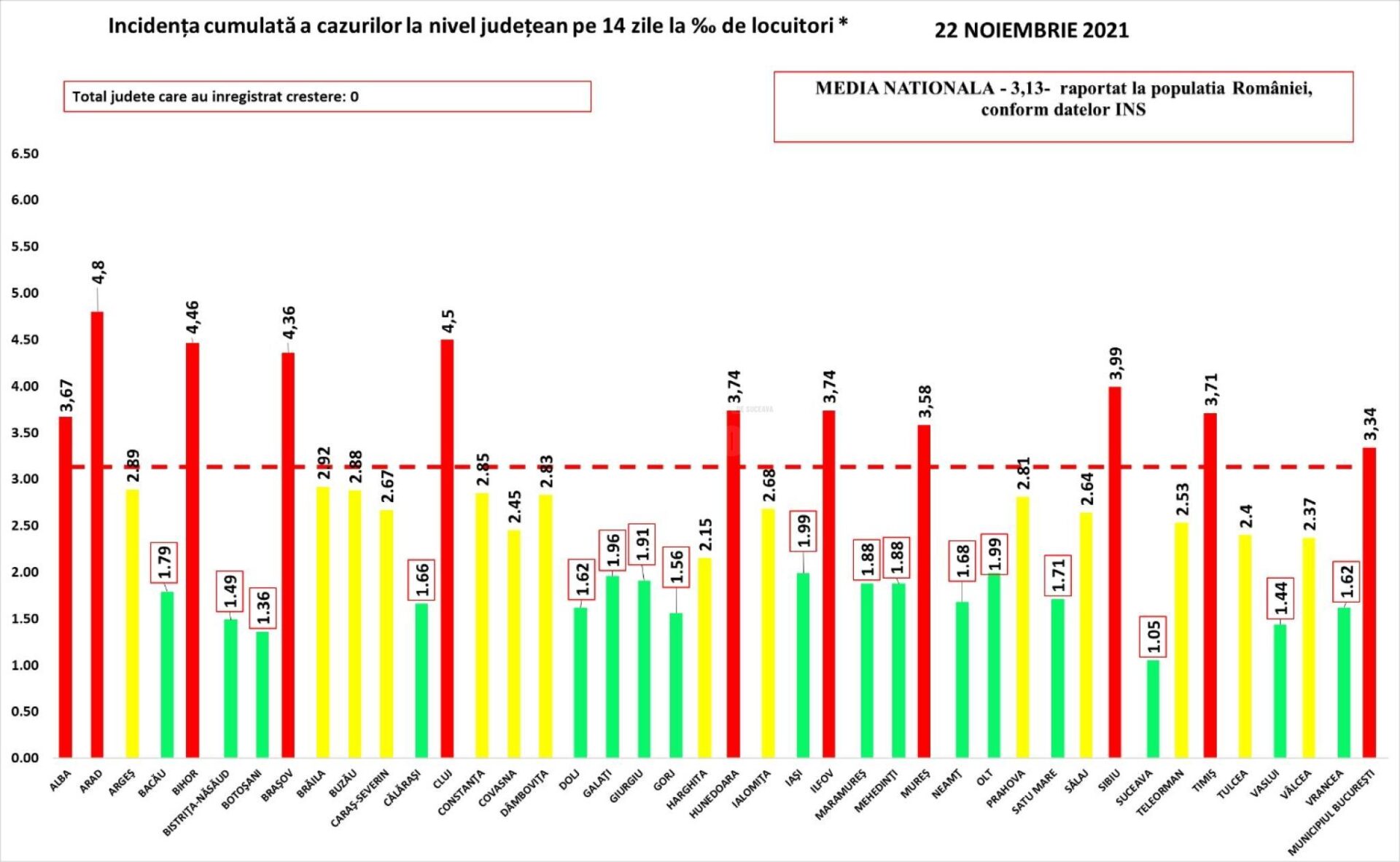 Au fost raportate 29 de decese anterioare intervalului de referință, survenite în județele Argeș, Bacău, Bihor, Giurgiu, Ilfov, Iași, Neamț, Vaslui și în București, în lunile octombrie și noiembrie 2021. În intervalul de referință au fost raportate 125 decese.