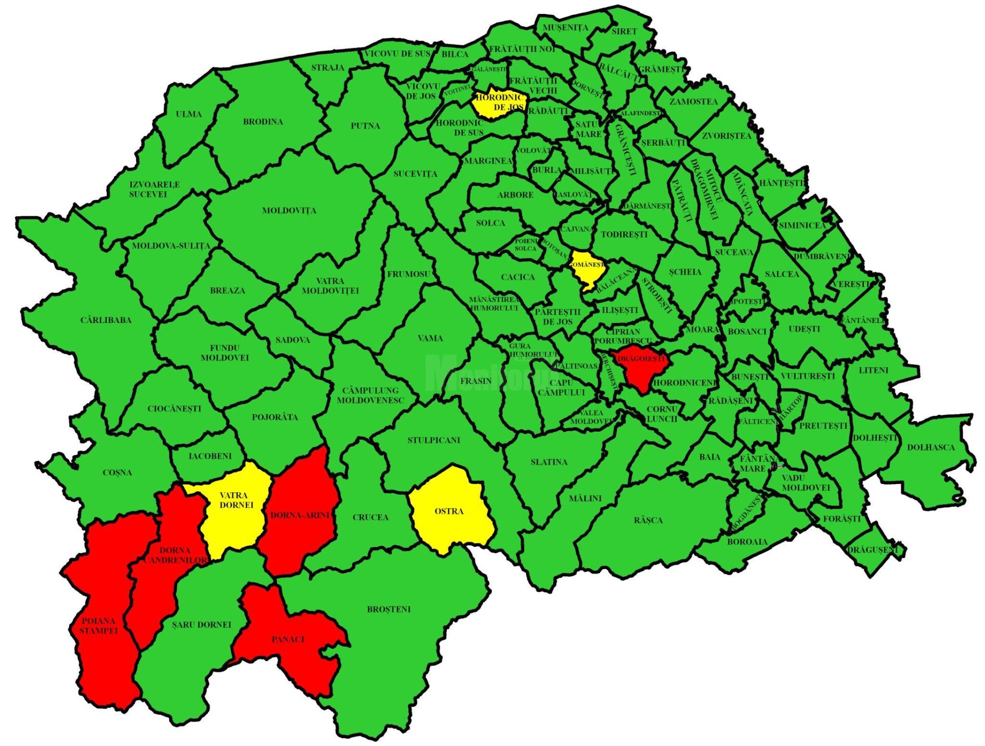 Conform distribuției cazurilor Covid-19 pe unități administrativ-teritoriale, din cele 114 localități, 11 nu au nici un caz activ, 17 au câte un caz, 49 au sub cinci cazuri, 25 au sub zece cazuri, iar 12 au peste zece cazuri în evoluție.