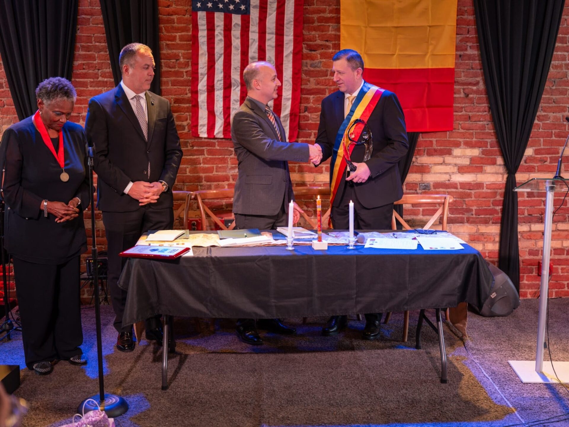 La eveniment au participat Consulul General al României la Chicago, Excelența Sa Lucian Ilie Stănică, Consulul Onorific al României în Michigan, Excelența Sa Nicolae Ianoș, Dr. Maxine Hankins Cain, președinta Comisiei de Înfrățire a Orașelor.
